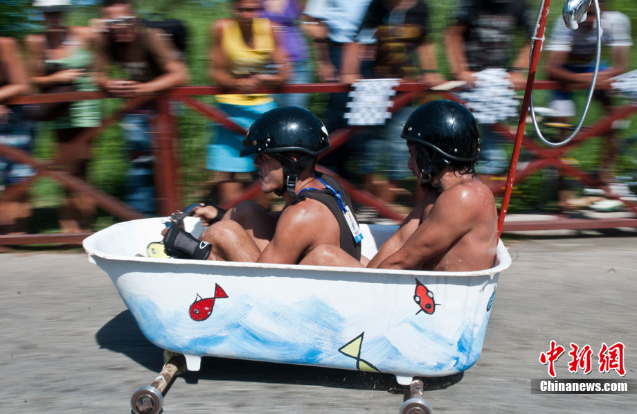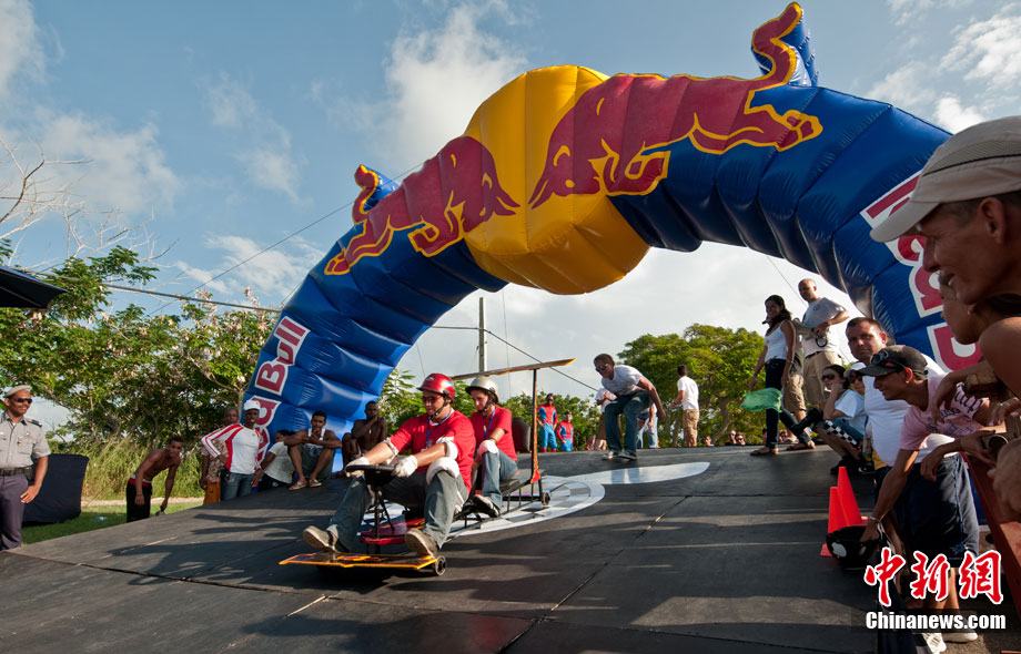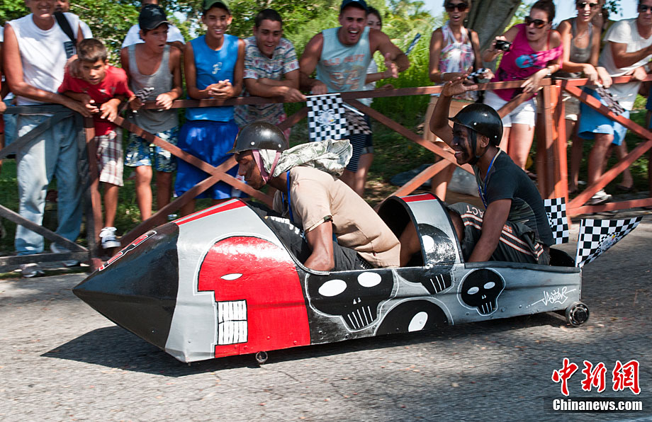 當(dāng)?shù)貢r(shí)間8月27日,古巴首都哈瓦那舉行了首屆無動力自制小車大賽。82名參賽選手駕駛著41輛自制小車參賽。