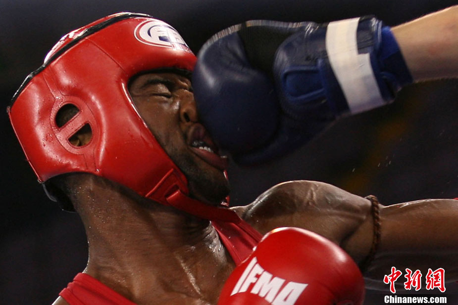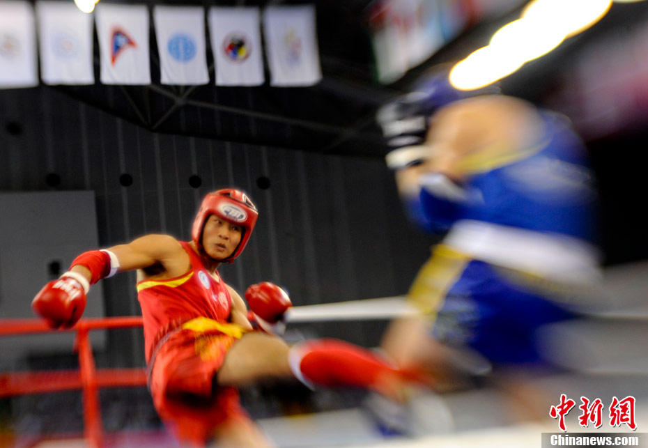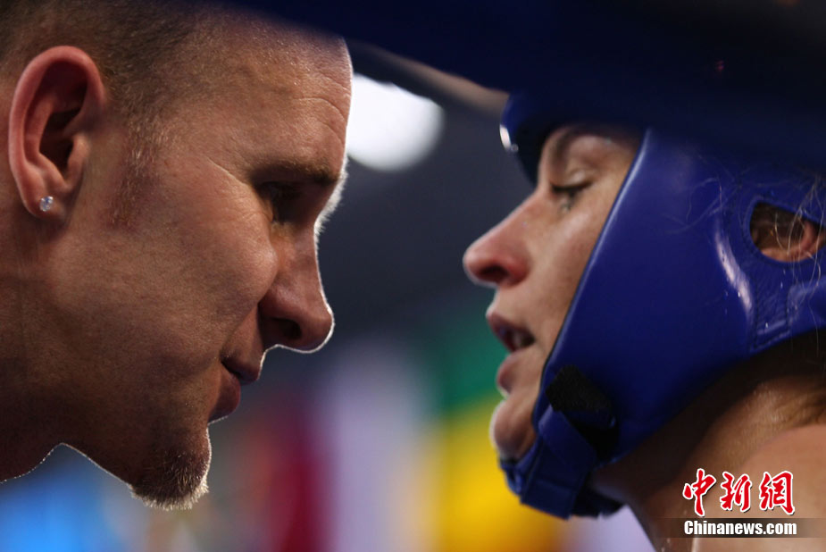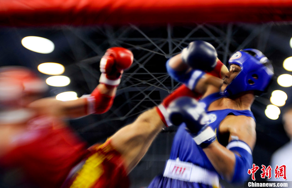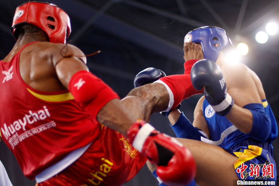 8月31日,2010年北京首屆世界武搏運(yùn)動會泰拳比賽在北京奧體中心體育館進(jìn)行了11個級別半決賽的較量,包括8個級別的男子半決賽和3個級別的女子半決賽。 中新社發(fā) 盛佳鵬 攝