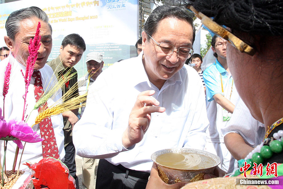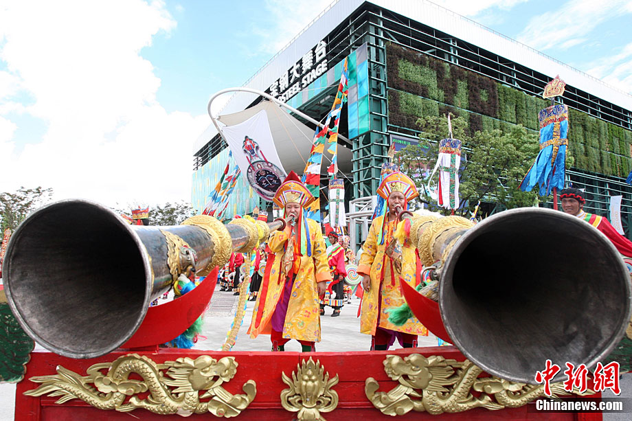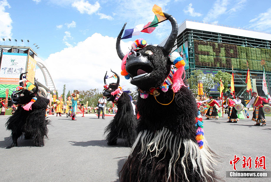 9月1日,為期5天的上海世博會(huì)西藏周在世博園拉開帷幕。活動(dòng)周期間,將先后有《天上西藏》寶綱舞臺(tái)演出、非物質(zhì)文化遺產(chǎn)展示、街頭花車巡游表演、慶典廣場(chǎng)《雪域歡歌》、特色產(chǎn)品展示等活動(dòng)與參觀者見面,全方位展示西藏人文魅力。圖為西藏活動(dòng)周開幕現(xiàn)場(chǎng)吹響開幕號(hào)。中新社記者 湯彥俊 攝