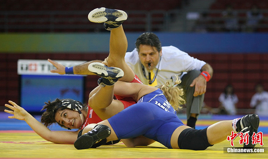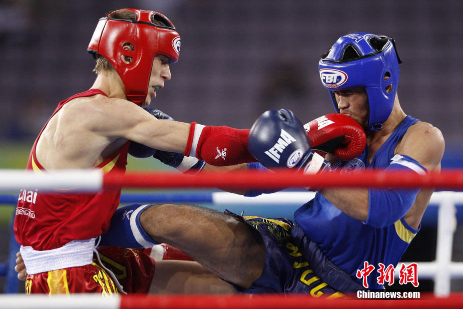 9月1日,2010年北京首屆世界武搏運(yùn)動(dòng)會(huì)空手道項(xiàng)目在北京科技大學(xué)體育館結(jié)束了全部爭(zhēng)奪。圖為在女子-68公斤級(jí)決賽中,來(lái)自美國(guó)的墨菲(Murphy)(圖)被法國(guó)選手泛亞特(Fanjat)擊中面部,最終不敵對(duì)手屈居第二。中新社記者 富田 攝