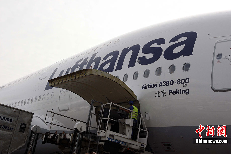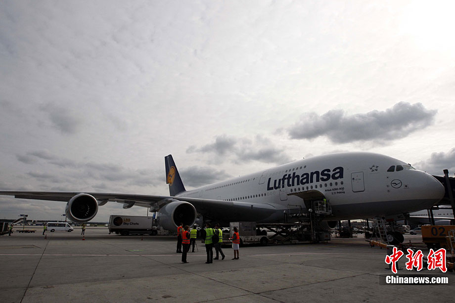 九月二日,德國(guó)漢莎航空公司正式開(kāi)通A380中國(guó)北京至漢莎德國(guó)主樞紐法蘭克福間航線(xiàn)。漢莎航空公司是首家在通往中國(guó)的長(zhǎng)途國(guó)際航線(xiàn)上采用被譽(yù)為是世界上體積最大、最具經(jīng)濟(jì)效益的A380空中客車(chē)的歐洲航空公司。為了紀(jì)念這一歷史性的時(shí)刻以及漢莎航空與中國(guó)深厚的友誼,這架A380被命名為“北京號(hào)”,而這也是漢莎航空首次以非德國(guó)城市命名旗下飛機(jī)。中新社記者 任海霞 攝