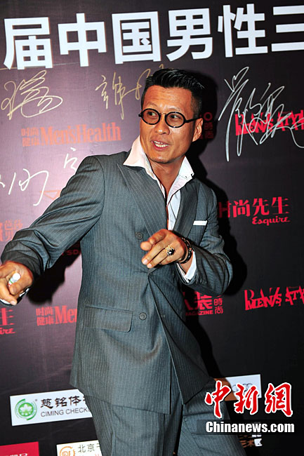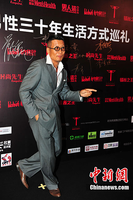 9月2日晚,作為2010“8.3國際男人節(jié)”的重要組成部分,也是高潮環(huán)節(jié)的“首屆中國男性三十年生活方式巡禮”,在北京舉行。數(shù)十位活躍在商業(yè)、傳媒、影視、音樂、文化、設計、體育及時尚等領域的精英人士出席了活動。圖為黃渤嘻哈裝扮亮相。中新社記者 李學仕 攝