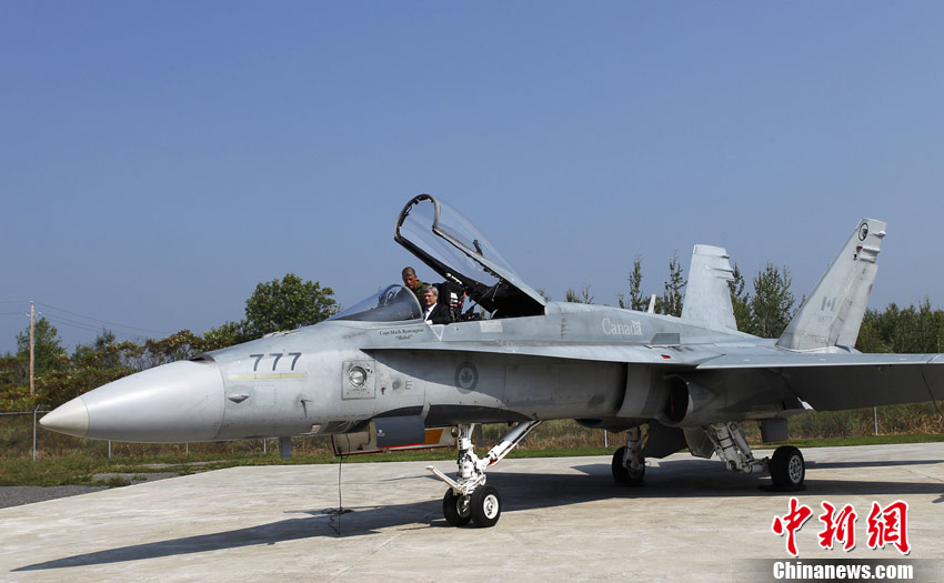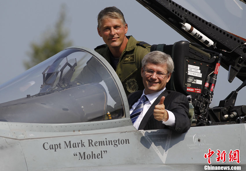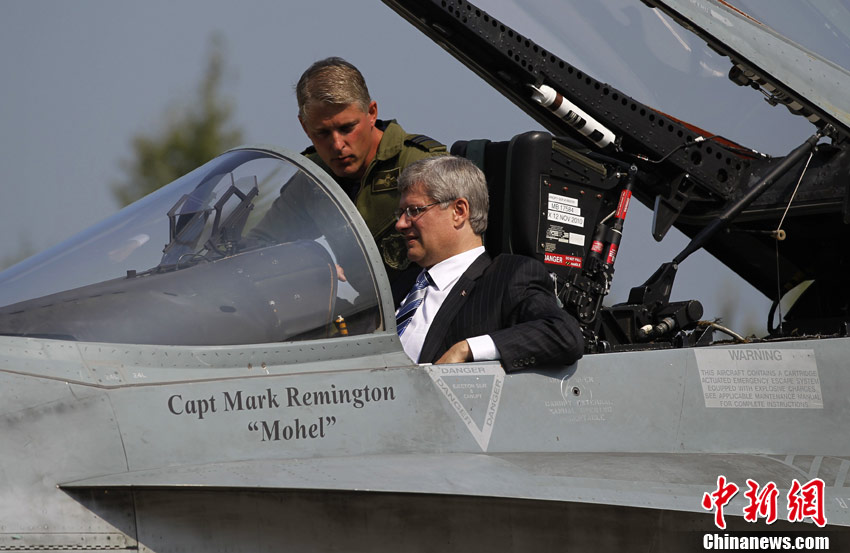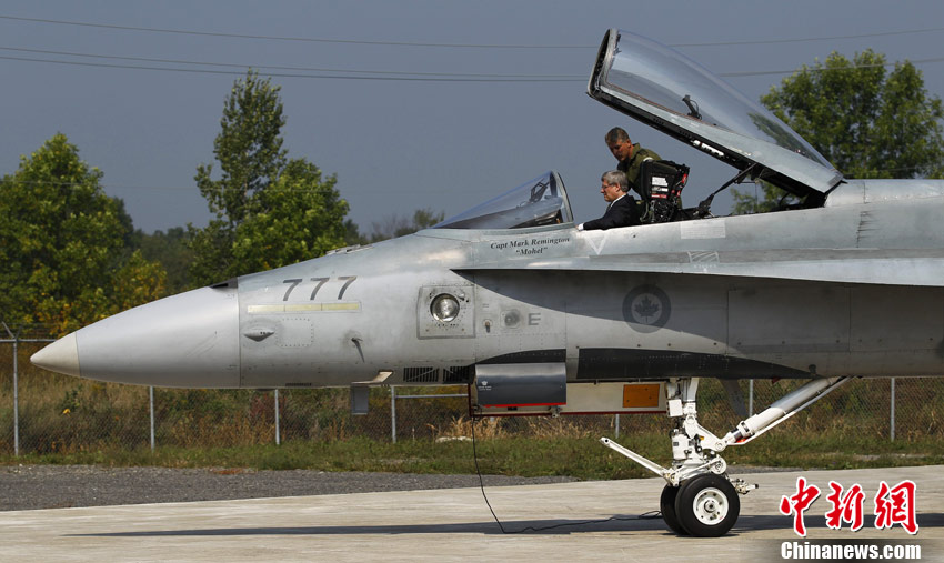 當(dāng)?shù)貢r間9月1日,加拿大米拉貝爾,加拿大總理哈珀參觀L-3通信公司,并坐進一架CF-18“大黃蜂”戰(zhàn)斗機駕駛艙進行體驗。