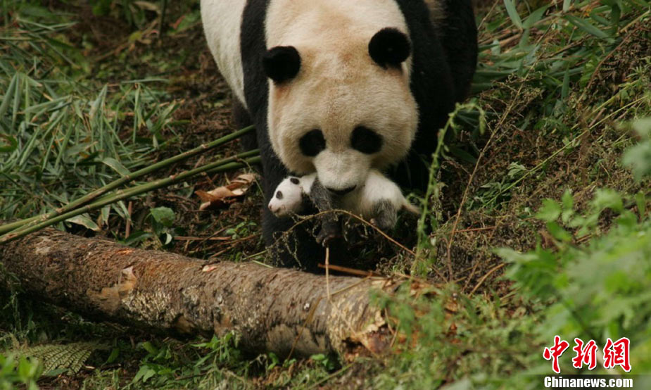 9月4日從臥龍中國(guó)保護(hù)大熊貓研究中心獲悉,全球首只在野化培訓(xùn)基地誕生的大熊貓寶寶----“草草”的幼仔已滿月。在8月3日降生于臥龍“核桃坪”野化培訓(xùn)基地后的一個(gè)月里,科研人員按預(yù)先計(jì)劃順利開(kāi)展了相關(guān)研究工作,讓“草草”帶著寶寶先在一個(gè)條件相對(duì)簡(jiǎn)單的環(huán)境中生活,目前,幼仔生長(zhǎng)狀況良好,從出生時(shí)的205克增長(zhǎng)到了1235克,身體健康,活力強(qiáng)。中新社發(fā) 曾昌霞 攝