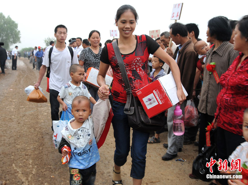 9月4日,河南省淅川縣盛灣鎮(zhèn)河扒村363戶1432名移民別離故土,奔赴新的家園。至此,河南省南水北調(diào)丹江口庫區(qū)首批移民集中搬遷安置工作圓滿完成。6月17日至9月4日,河南省淅川縣南水北調(diào)丹江口庫區(qū)首批60886名移民在78天時間全部搬遷完畢,整個過程無一例安全責任事故,無一例移民人身傷亡事故,實現(xiàn)了平安、有序、和諧搬遷。中新社發(fā) 淅川宣 攝