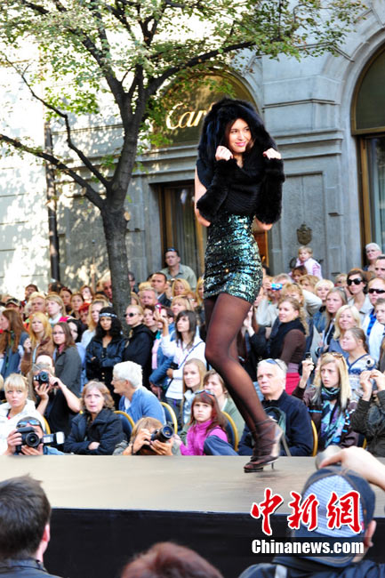 捷克首都布拉格4日和5日接連兩天在市中心最繁華的商業(yè)街巴黎大街封閉車輛交通,在街道中間搭起長臺,向公眾表演時裝秀。其中一組兒童秀引起觀眾轟動。黃頻 攝