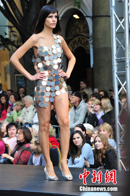 捷克布拉格繁華街區(qū)上演街頭時裝秀