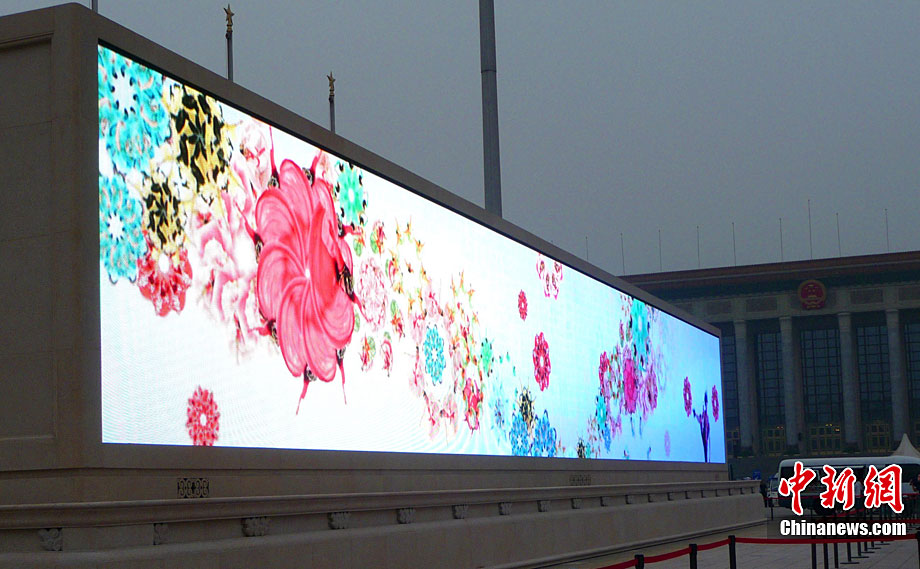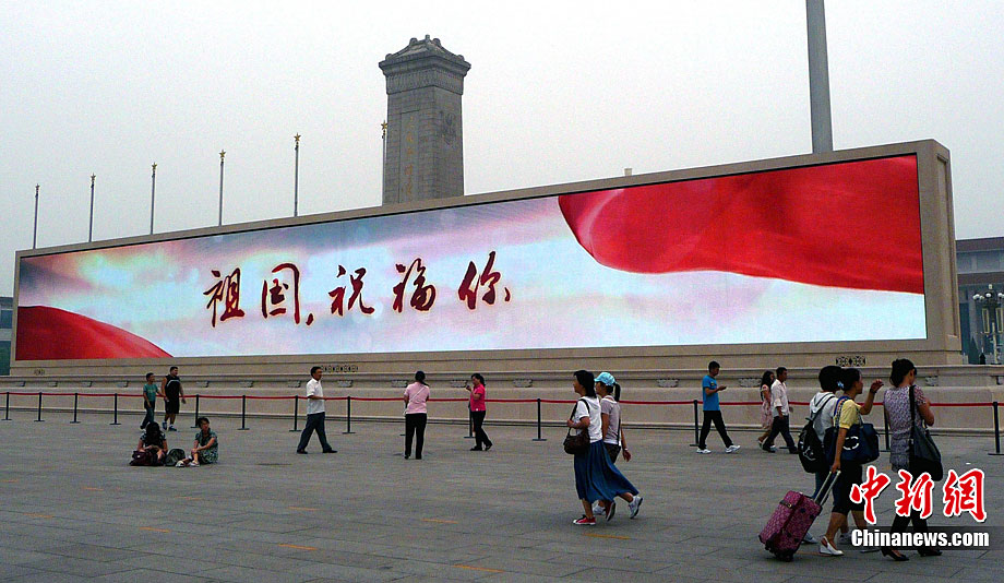 9月6日傍晚,北京天安門廣場人民英雄紀念碑北側,兩塊新近亮相大理石基座的LED巨屏開始調試,巨屏將以新穎靚麗的視頻畫面迎接國慶節(jié)的到來。據悉,原本為臨時設施的這兩塊國內最大廣場顯示屏,現改造為固定設施,成為天安門廣場的重要景觀,此次更換新屏后,像素間距將從16毫米壓縮至12毫米,畫面更加清晰逼真。玉龍 攝 圖片來源:cnsphoto