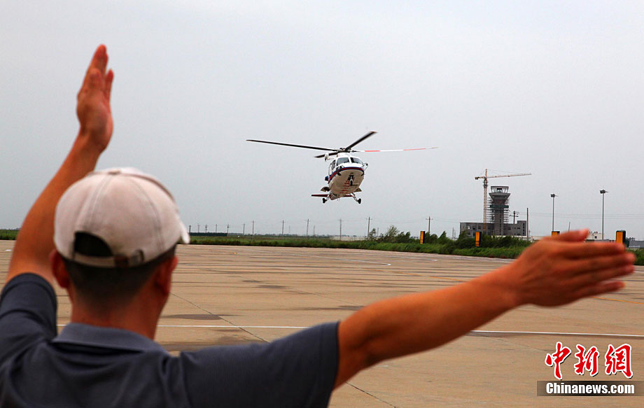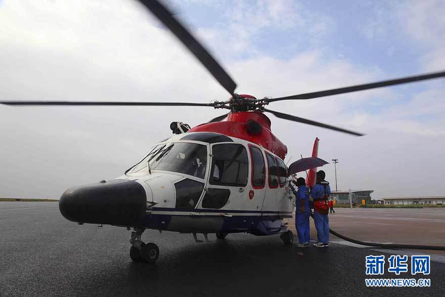 9月8日,交通運(yùn)輸部北海第一救助飛行隊(duì)救援人員駕駛直升機(jī)在傾斜的山東東營(yíng)勝利油田3號(hào)鉆井平臺(tái)事故現(xiàn)場(chǎng)搜救。 9月7日23時(shí),山東東營(yíng)勝利油田位于渤海的作業(yè)3號(hào)鉆井平臺(tái),因傾斜遇險(xiǎn),平臺(tái)上4人落水,32人被困平臺(tái)。中國(guó)海上搜救中心連夜救助,目前已有34人獲救,救援人員正在全力搜救2名失蹤人員。圖片來(lái)源:新華網(wǎng)