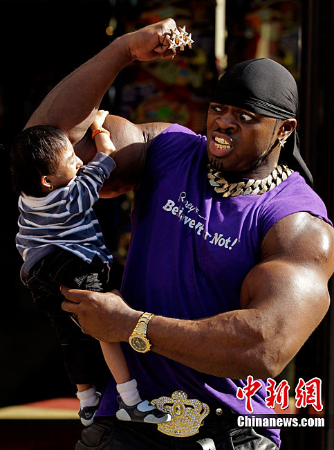 9月9日,全世界最矮男子——來(lái)自尼泊爾的馬嘉爾和英國(guó)胳膊最粗的男子安德魯.哈里森在倫敦參加“信不信由你”博物館的慶祝活動(dòng)。馬嘉爾17歲,是身高為56厘米;而28歲的哈里森的胳膊圍度達(dá)61厘米。但是塊頭大并不能給哈里森帶來(lái)多大便宜,相反小巧的馬嘉爾卻是靈活異常。