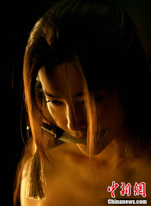 近日,影片《狄仁杰之通天帝國》曝出一組劉德華與李冰冰的“激情打斗”劇照。片中李冰冰玉背全裸口含尖刀,伏在上半身赤裸的劉德華身上,但兩人眼神并無嫵媚滿是憤怒,為影片增添了不少懸念。中新社發(fā) huayi 攝