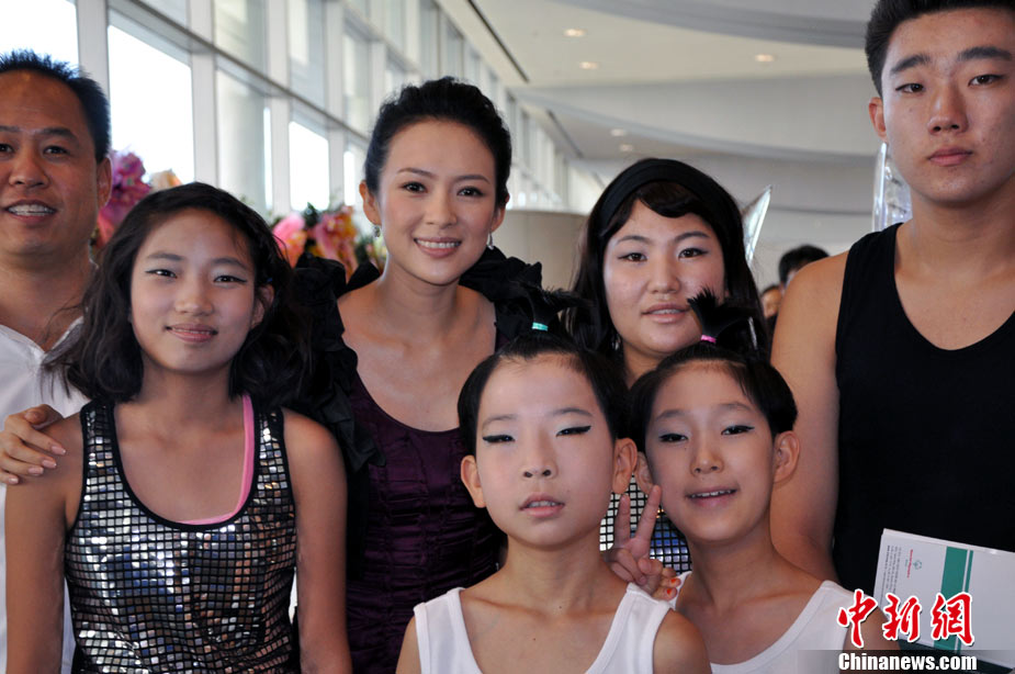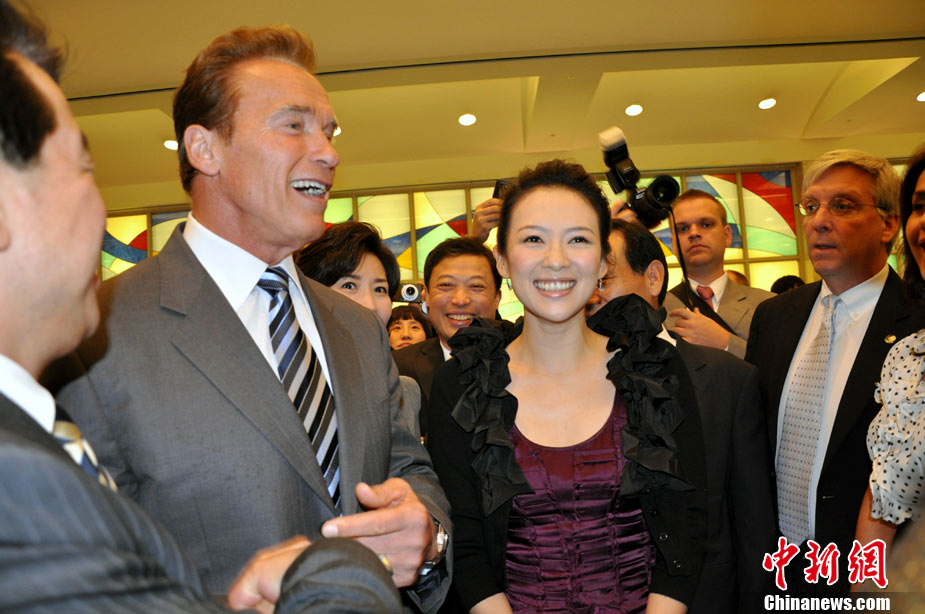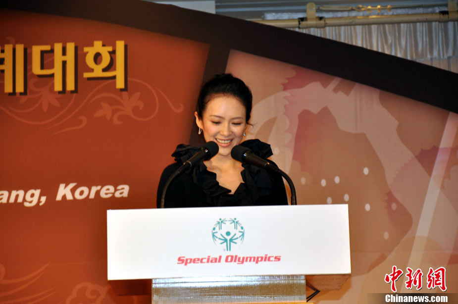當(dāng)?shù)貢r間9月15日上午,國際特奧會在首爾舉辦“2013年特殊奧林匹克冬季運(yùn)動會”新聞發(fā)布會和簽字儀式,并宣布韓國平昌將成為本屆冬季特奧會的主辦地。特奧全球形象大使、國際影星章子怡出席發(fā)布會,身體力行關(guān)愛智障人士,為他們的表演和精神鼓勁加油。美國加州州長、前動作巨星阿諾德•施瓦辛格出席該活動,并與章子怡等共同見證特奧的啟動。圖為章子怡為智障兒童加油打氣。