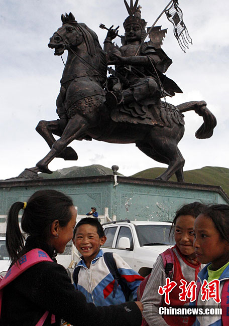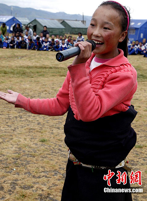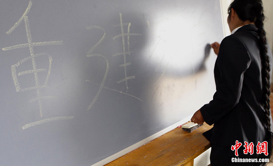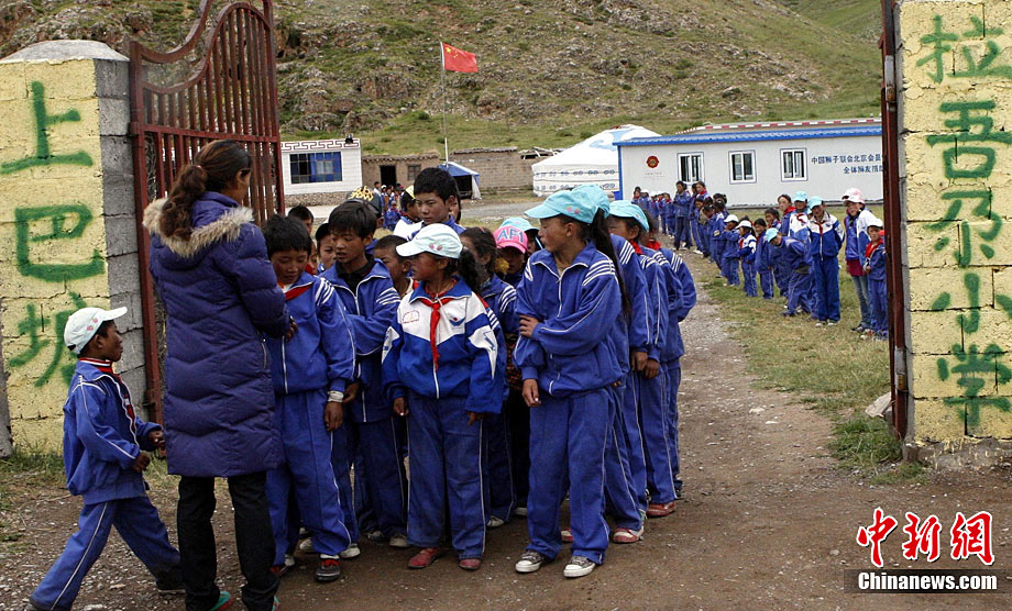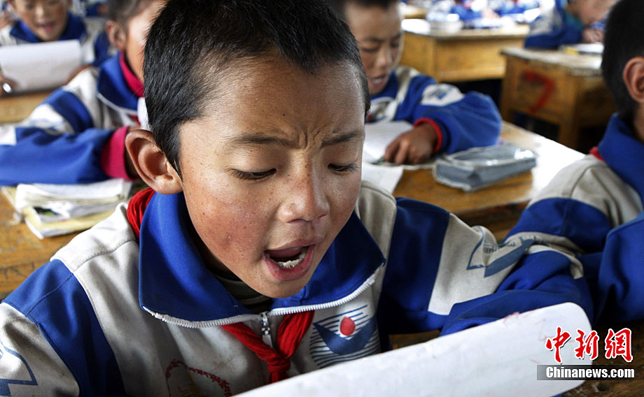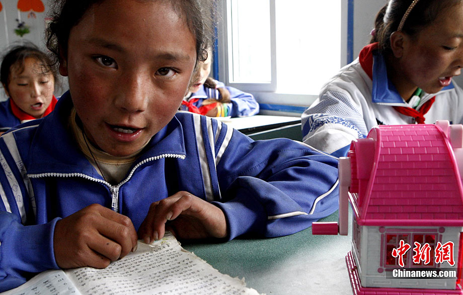 時(shí)逢中秋佳節(jié)到來之際,經(jīng)歷了地震5個(gè)月后的中國青海玉樹災(zāi)區(qū)正在加緊重建家園。如今,玉樹街頭臨時(shí)搭建的貨店及百貨商店里各種日用品琳瑯滿目,菜市場新鮮的蔬菜和水果供應(yīng)充足,幾家重新開業(yè)的飯館生意興隆。圖為在當(dāng)?shù)匦W(xué),學(xué)生們?cè)谥亟ǖ慕淌依锷险n。中新社記者 錢興強(qiáng) 攝