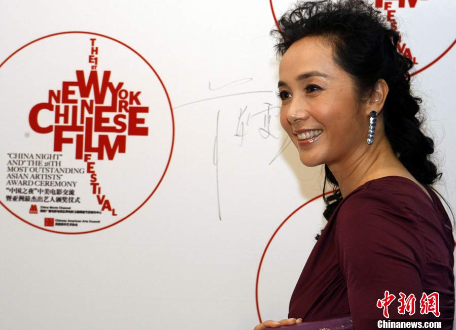當(dāng)?shù)貢r間9月18日晚,首屆“紐約中國電影節(jié)”在紐約林肯中心舉行開幕式。圖為中國香港演員張柏芝走完紅毯后,在電影節(jié)的背景板前簽名留影。 中新社記者 孫宇挺 攝