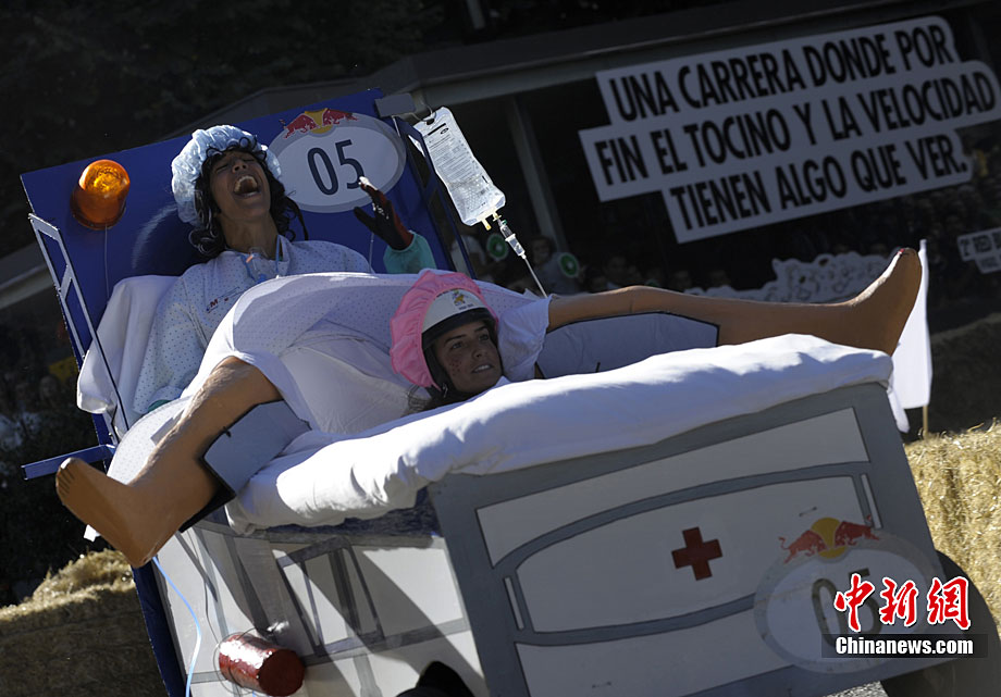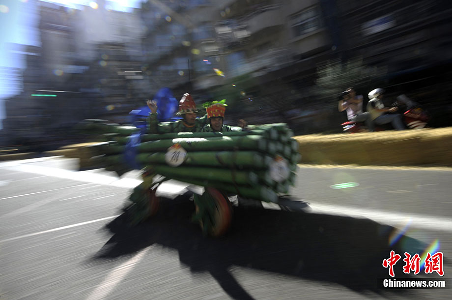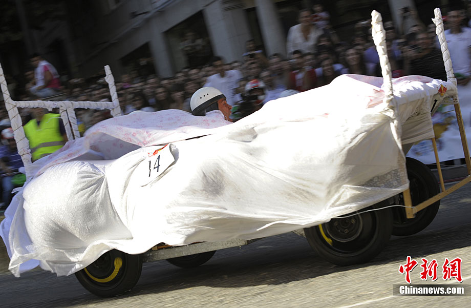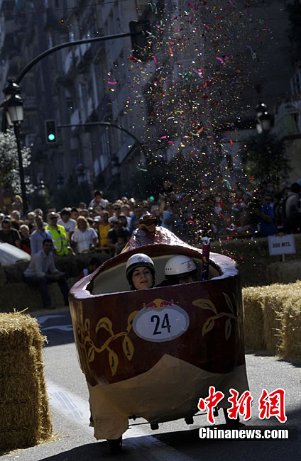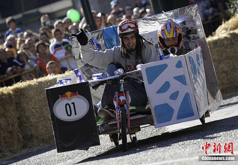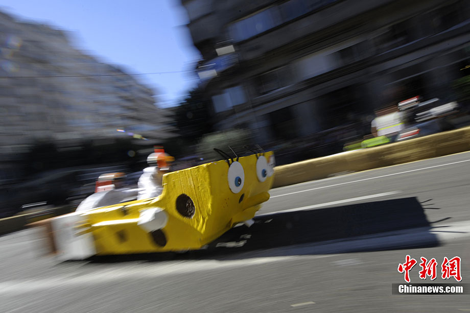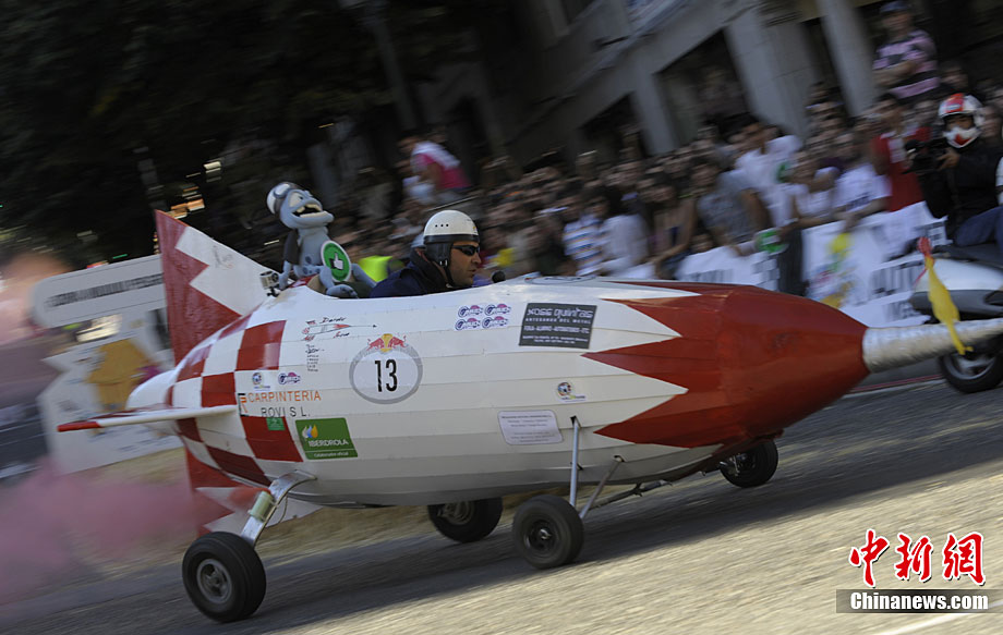 當(dāng)?shù)貢r(shí)間9月19日,西班牙西北部城市維哥迎來(lái)了一場(chǎng)別開(kāi)場(chǎng)面的無(wú)動(dòng)力小車(chē)大賽。參賽選手各自設(shè)計(jì)制作的參賽車(chē)輛,迎得了人們的掌聲。