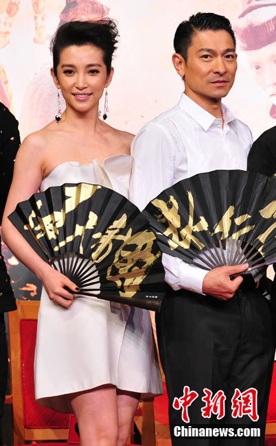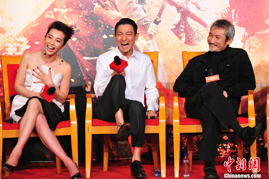 9月19日,由徐克導演、陳國富監(jiān)制、洪金寶擔任武術(shù)指導的華誼兄弟大片革命之作《狄仁杰之通天帝國》在京舉行亞洲首映發(fā)布會。導演徐克攜主演劉德華、李冰冰、劉嘉玲、梁家輝、鄧超全陣容亮相,這也是五大主演首次同臺宣傳。主演狄仁杰的劉德華在現(xiàn)場大開玩笑,多次引爆笑彈。該片將于9月29日上映。圖為劉德華扮起觀音姿勢。中新社記者 李學仕 攝