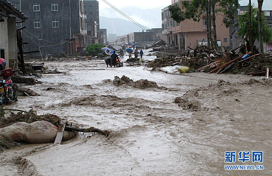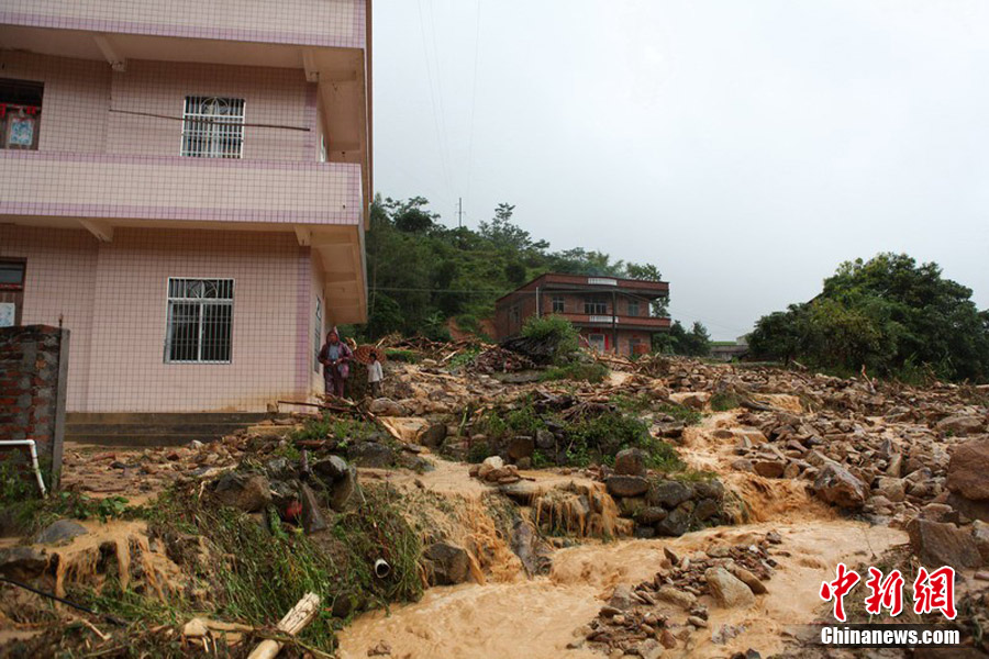 據(jù)廣東省防總消息,截至21日23時,“凡亞比”造成廣東高州市、信宜市、陽春市三市共死亡13人,失蹤33人。圖為暴雨引發(fā)山洪災(zāi)害。中新社發(fā) 聞達 攝