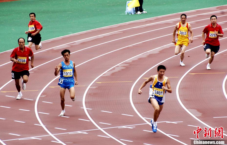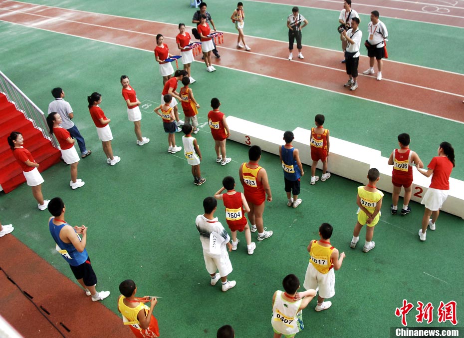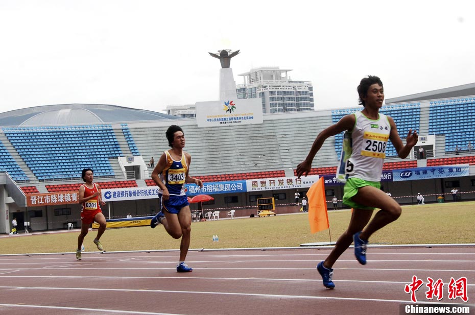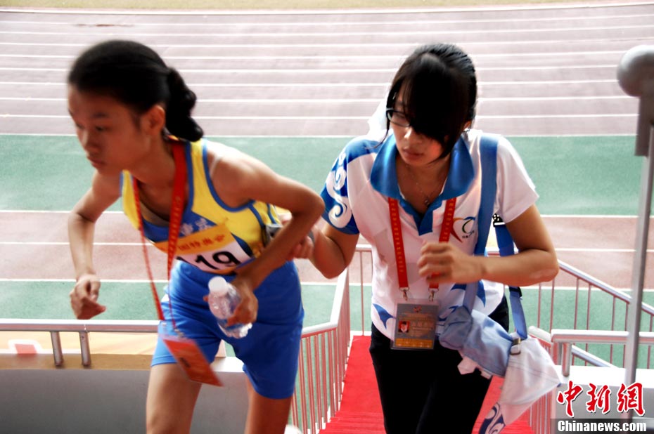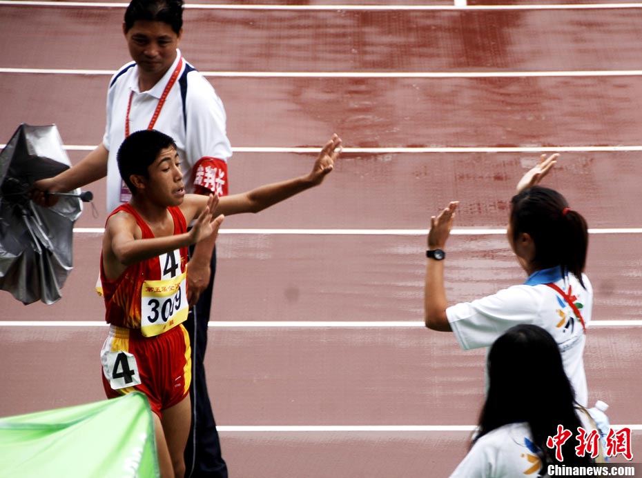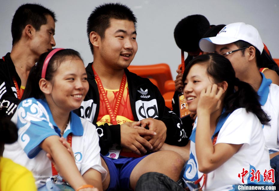 安徽特奧健兒何恩澤奪冠后與前來為他加油的媽媽和妹妹幸福相擁。王東明 攝