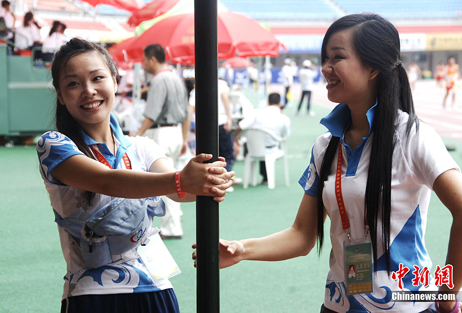9月19日至25日,中國第五屆特奧會在福州舉行,賽場外美麗的志愿者成為一道亮麗風(fēng)景線。王東明 攝