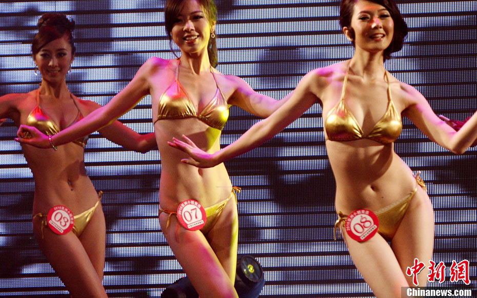 9月24日晚,2010亞洲小姐競(jìng)選中國(guó)內(nèi)地網(wǎng)絡(luò)賽區(qū)總決賽在北京舉行,15位佳麗“火辣、性感”登場(chǎng)角逐,經(jīng)過泳裝、云錦晚裝秀、才藝展示以及現(xiàn)場(chǎng)知識(shí)問答等環(huán)節(jié),最后選自西南網(wǎng)絡(luò)賽區(qū)的5號(hào)王欣獲得冠軍、華北網(wǎng)絡(luò)賽區(qū)3號(hào)劉曉智獲得亞軍、華北網(wǎng)絡(luò)賽區(qū)10號(hào)何婭萌獲得季軍。圖為參賽佳麗展示風(fēng)采. 中新社發(fā) 錢興強(qiáng) 攝