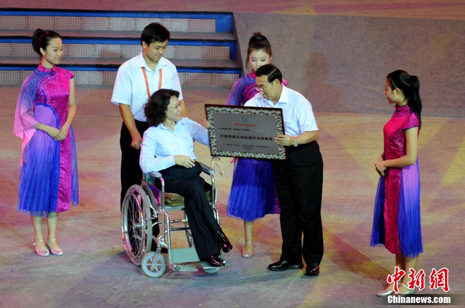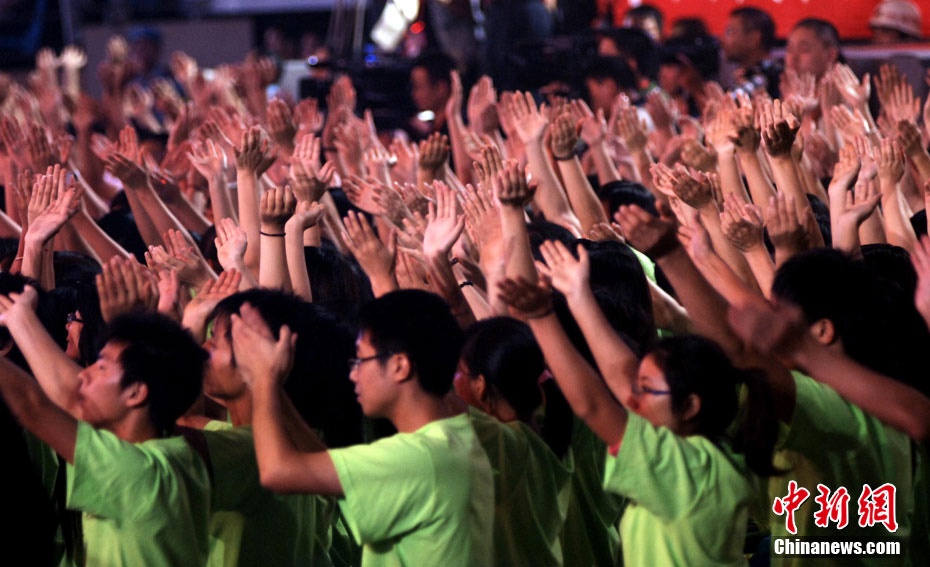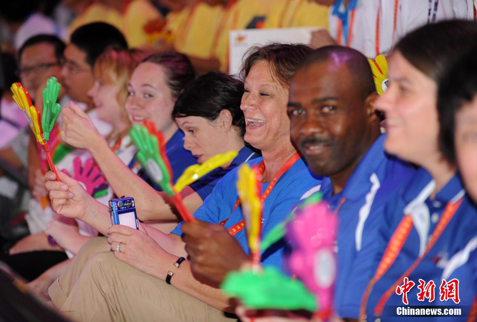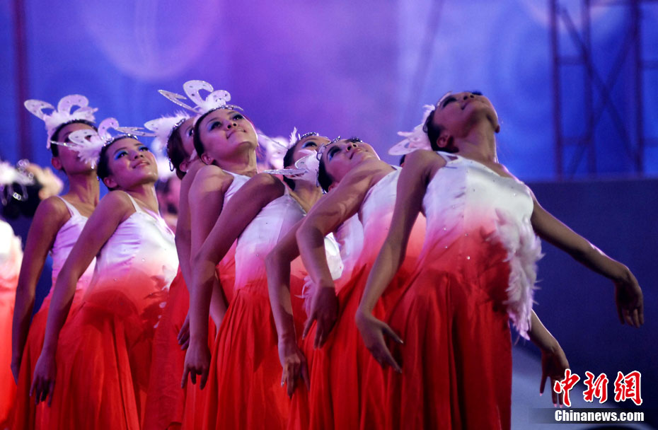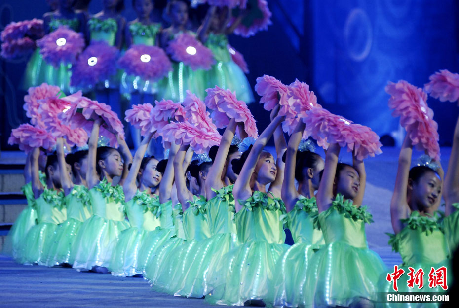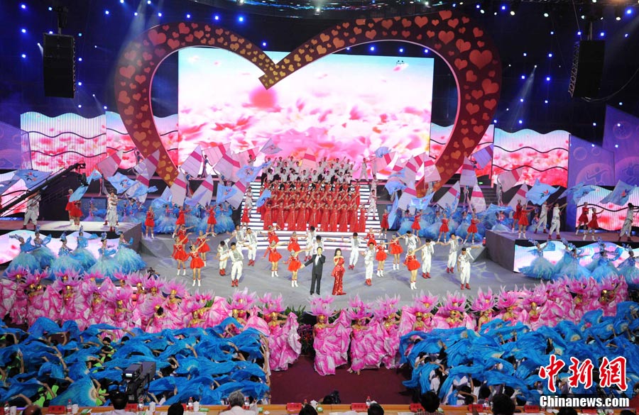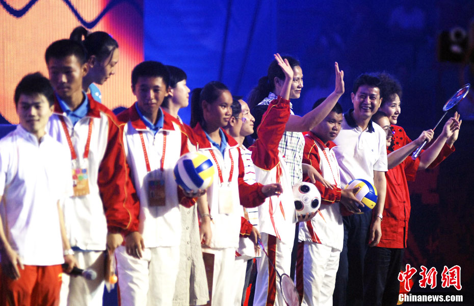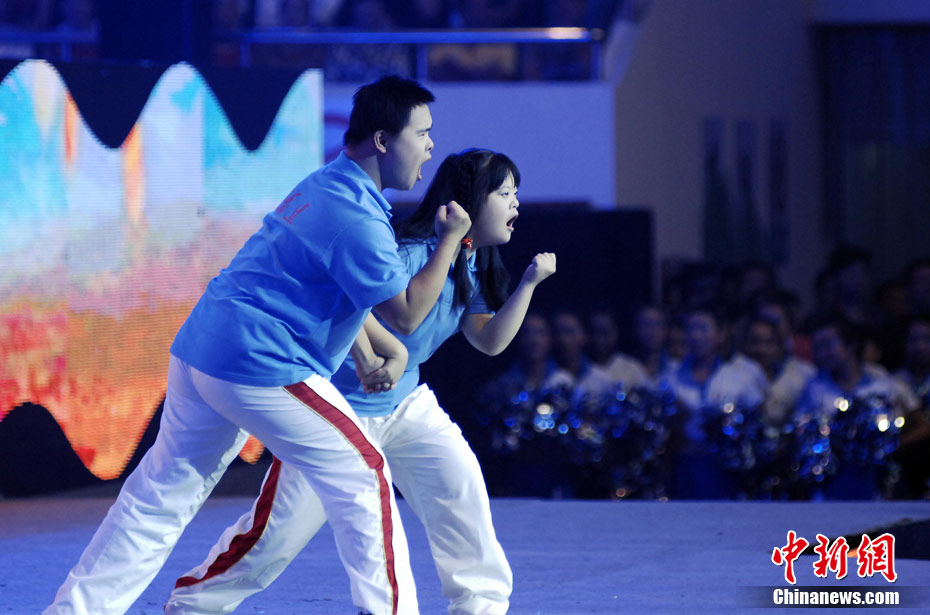 9月25日晚,第五屆全國特奧會閉幕式在福建省體育館舉行。閉幕式文藝晚會主題為“大愛無言”,分《感恩大地》《超越夢想》《激情永恒》3個篇章,共10個節(jié)目,包括歌舞、朗誦、真情傾訴、獨唱等,演出時間約60分鐘。 圖為閉幕式文藝演出。 中新社記者 劉可耕 攝