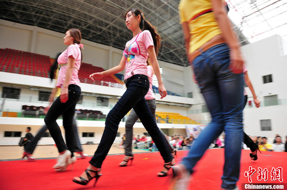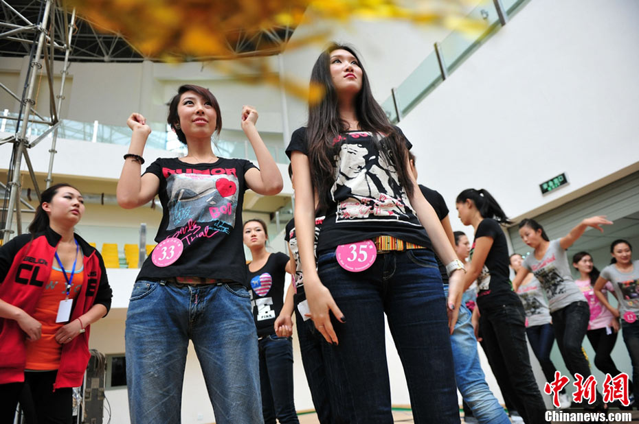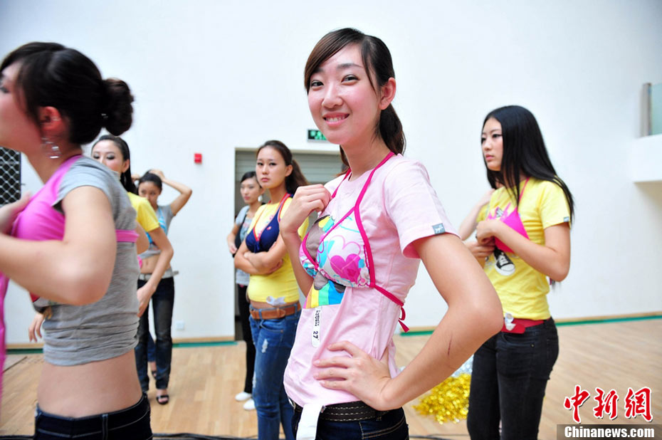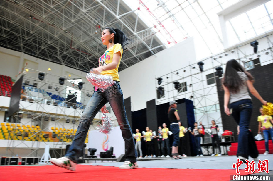 9月25日,40名佳麗選手云集四川省劍閣縣體育館,為即將到來的2010中華旅游小姐大賽中國區(qū)總決賽晚會進行彩排。為了一個小時的時尚秀,選手們需要參加兩天共10幾個小時的高強度彩排,大部分的時間她們在“模指”的指導下站立、走臺、或者是緊張的換衣。然而,猶如T臺上的絢麗一樣,她們的后臺同樣精彩。中新社記者 李學仕 攝