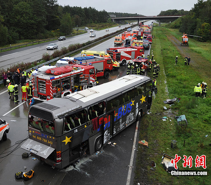 當(dāng)?shù)貢r間9月26日,德國一輛旅游大巴在柏林南部朗斯多夫的高速公路上發(fā)生嚴(yán)重交通事故,造成至少10人死亡,30人受傷。