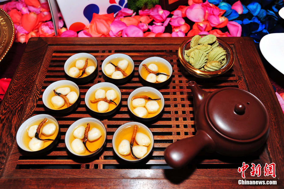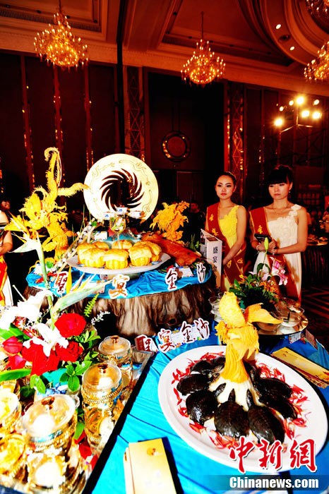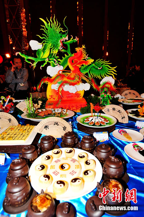 26日下午,第七屆中國國際美食旅游節(jié)在成都世紀(jì)城嬌子國際會議中心開幕。成都榮獲“世界美食之都”后的首道創(chuàng)意大餐在美食旅游節(jié)上正式亮相,“成都盛宴”薈萃了60桌主題宴席和經(jīng)典菜品,共計約1000款菜品,分川菜精品展示區(qū)、外國菜精品展示區(qū)、八大菜系精品展示區(qū)、品牌火鍋展示區(qū)、區(qū)(市)縣特色展示區(qū)。 安源 攝
