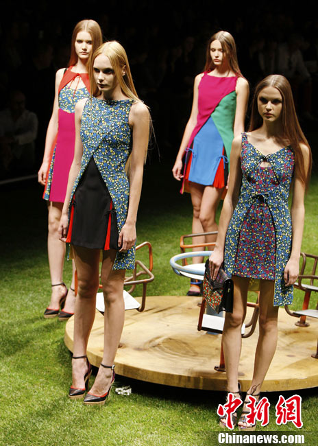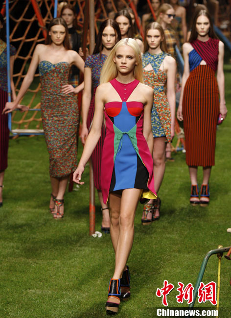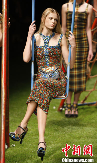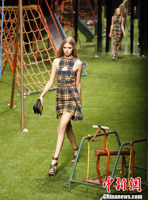9月26日,在意大利米蘭舉行的2011米蘭春夏時(shí)裝周上,上演了一場“草地T臺(tái)秀”,眾多世界名模在綠地上絢麗登場。