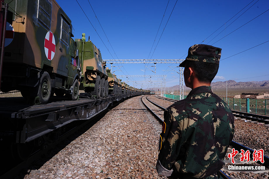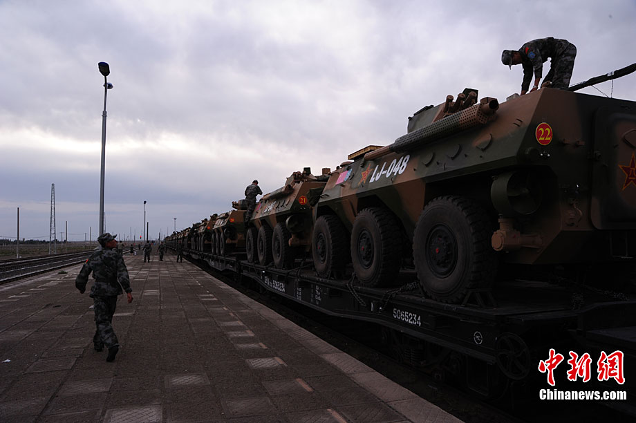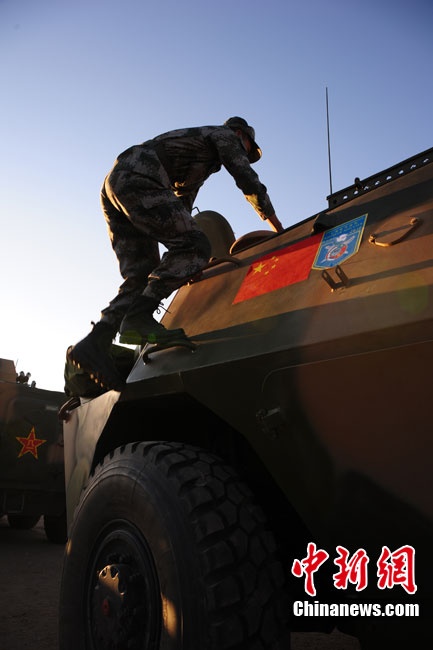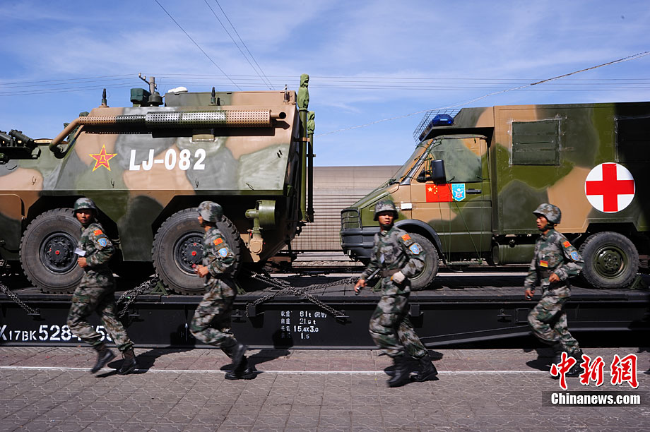 9月10日至9月25日,為期16天的“和平使命-2010”聯(lián)合反恐軍事演習在哈薩克斯坦舉行。圖為中方參演部隊在做出發(fā)前的準備。張斌 攝