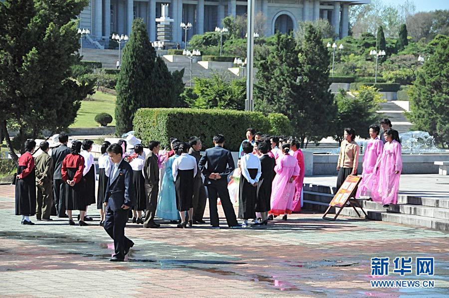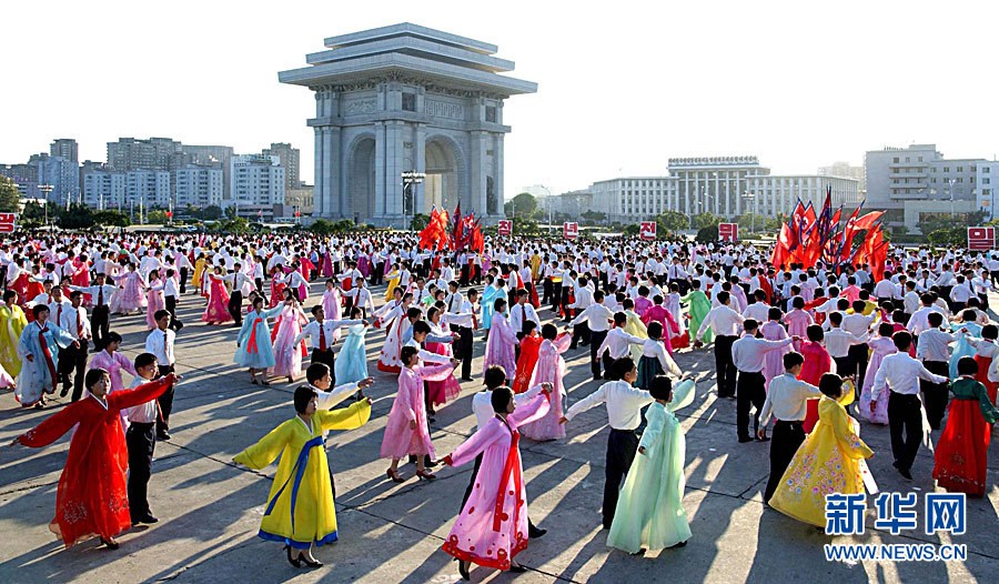 9月28日,朝鮮青年學(xué)生在首都平壤舉行舞蹈集會,慶祝朝鮮勞動黨代表會議當(dāng)天推舉金正日為朝鮮勞動黨總書記。圖片來源:新華網(wǎng)