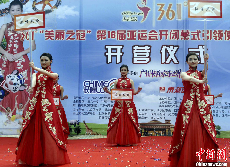 9月28日,來自全國各大城市的100名亞運(yùn)引領(lǐng)使者在廣州長隆歡樂世界參加了開營儀式,并進(jìn)行為期15天的封閉式訓(xùn)練。中新社發(fā) 劉衛(wèi)勇 攝