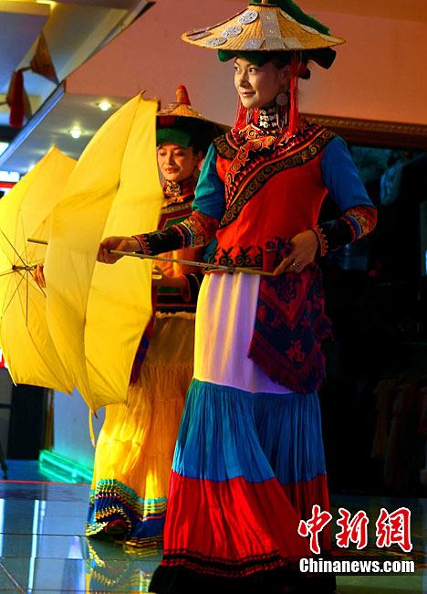 西昌市一家彝族特色餐館,9月29日表演民族舞蹈、展示民族服飾,表達民族情懷,祝福中國第二顆繞月探測衛(wèi)星——“嫦娥二號”圓滿升空。據(jù)悉,“嫦娥二號”任務擬定于9月30日開始加注火箭推進劑,10月1日至3日擇機實施衛(wèi)星發(fā)射。中新社記者 宋吉河 攝