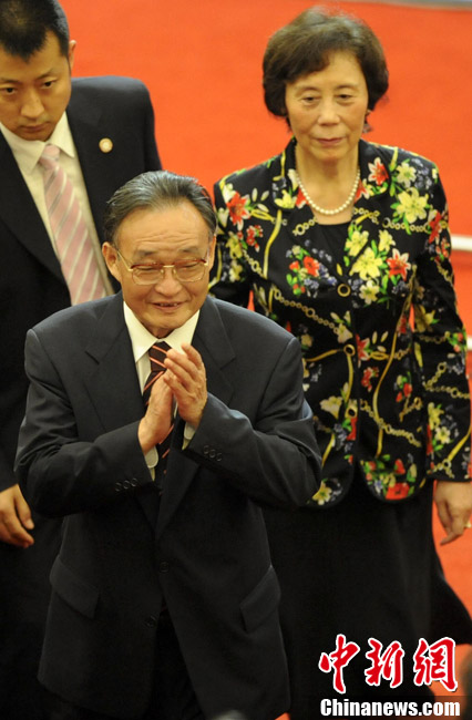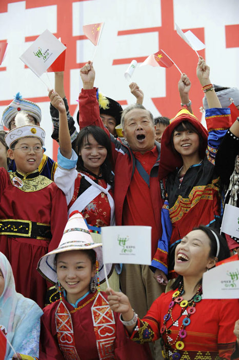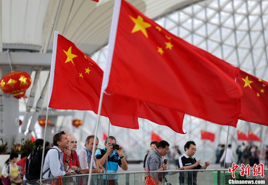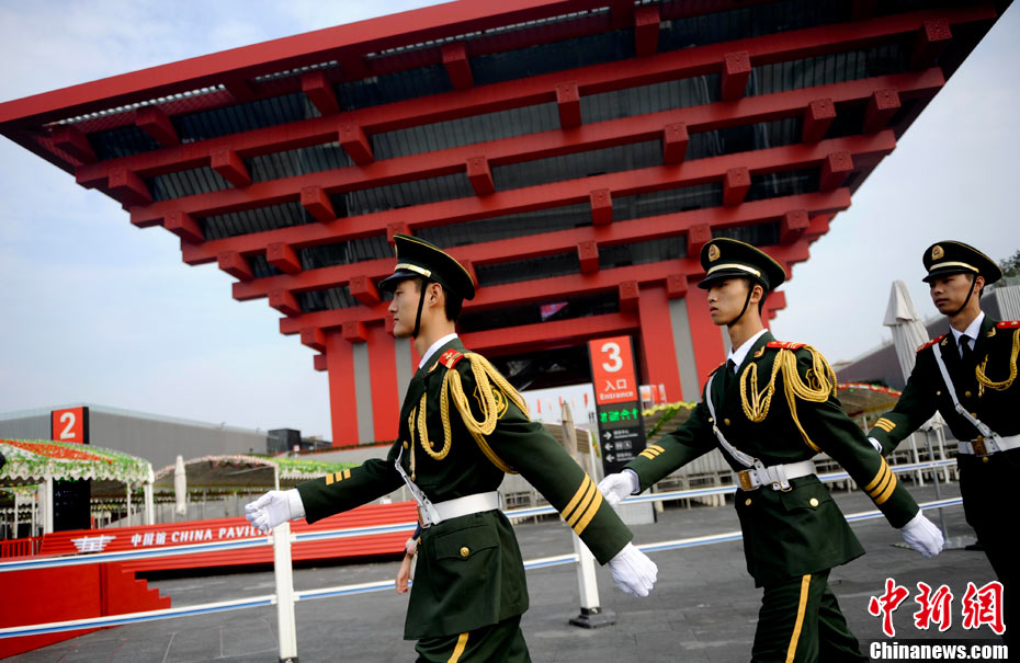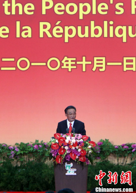10月1日上午,上海世博會“中國國家館日”儀式在世博中心中央大廳舉行,全國人大常委會委員長吳邦國出席并致辭。中新社記者 任晨鳴 攝