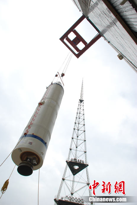 繼嫦娥一號(hào)衛(wèi)星圓滿完成我國(guó)首次繞月探測(cè)工程之后,嫦娥二號(hào)繞月探測(cè)衛(wèi)星作為我國(guó)探月工程二期的先行者,又踏上了奔月的征程。2010年9月中旬以來(lái),西昌衛(wèi)星基地緊鑼密鼓地為“嫦娥二號(hào)”衛(wèi)星發(fā)射做了大量的準(zhǔn)備工作。圖為吊裝火箭助推場(chǎng)景。 中新社發(fā) 張雷 王銳 攝 圖片來(lái)源:cnsphoto