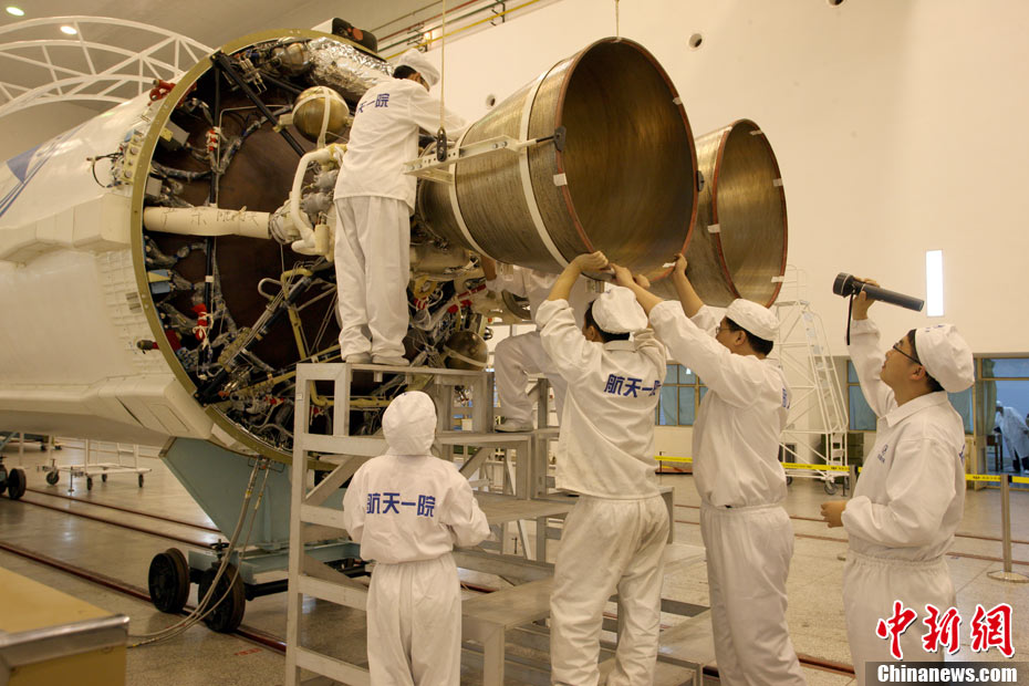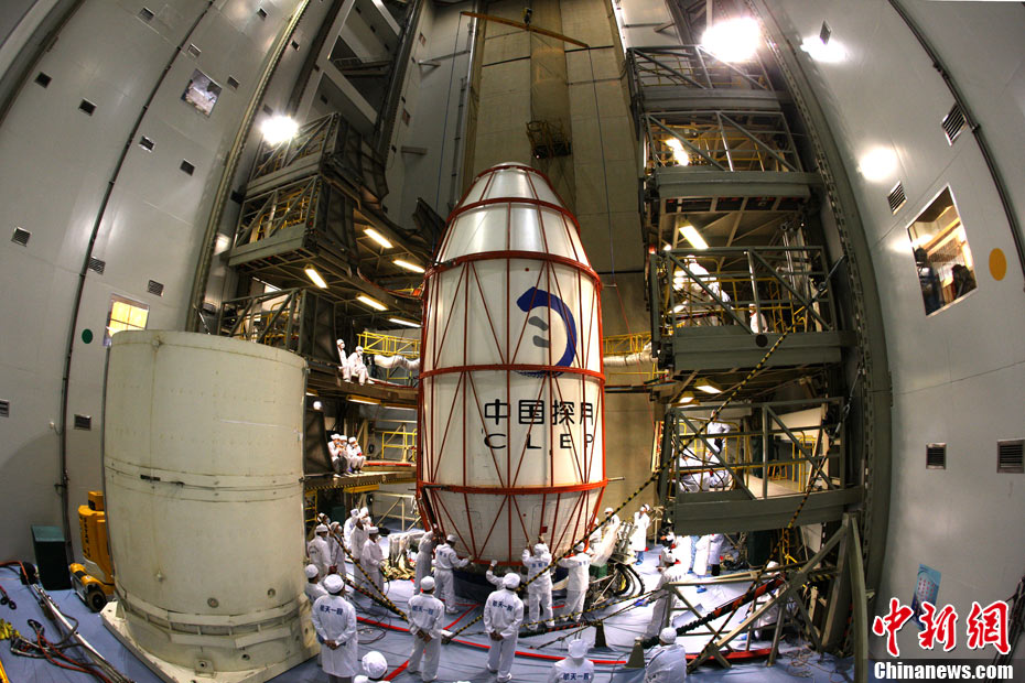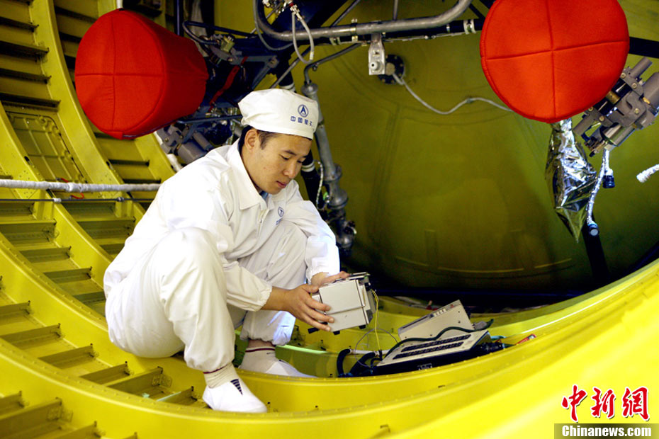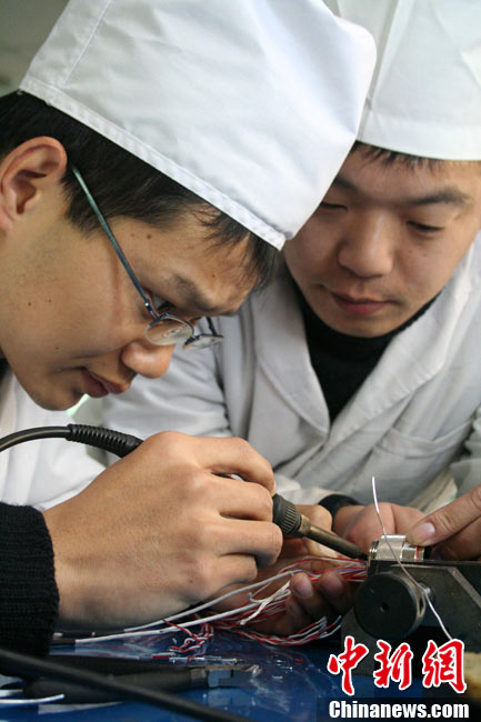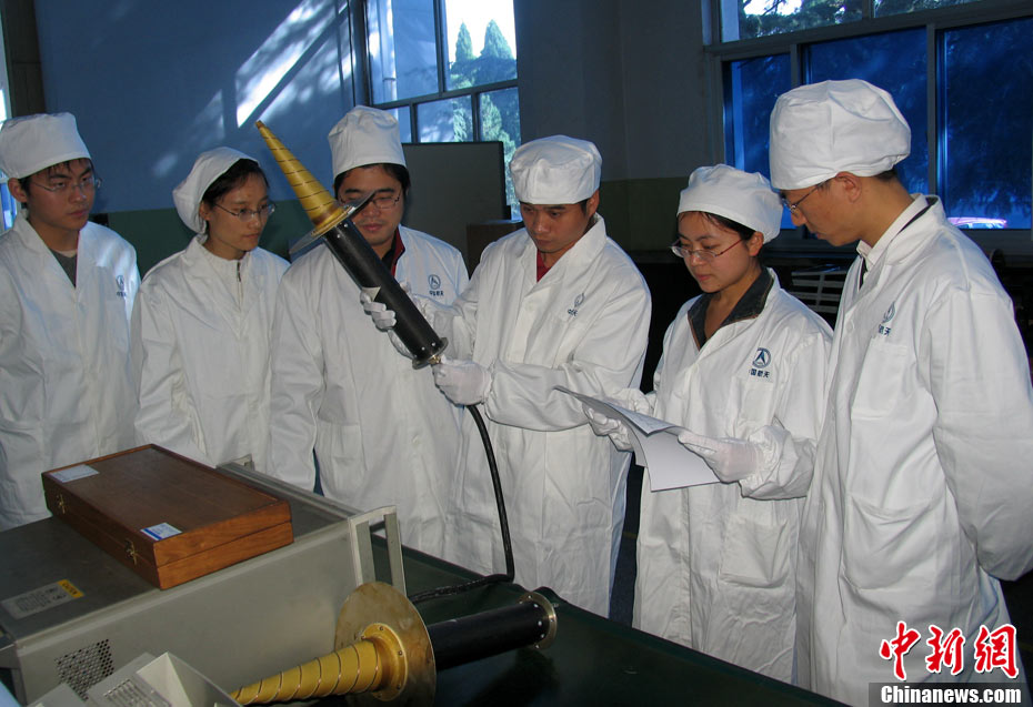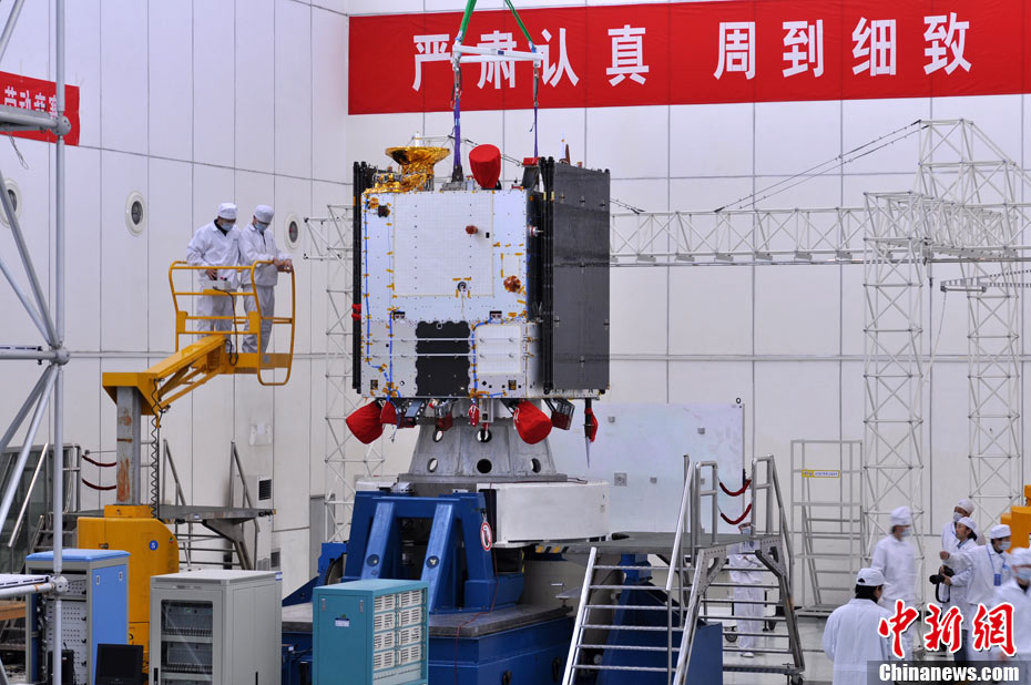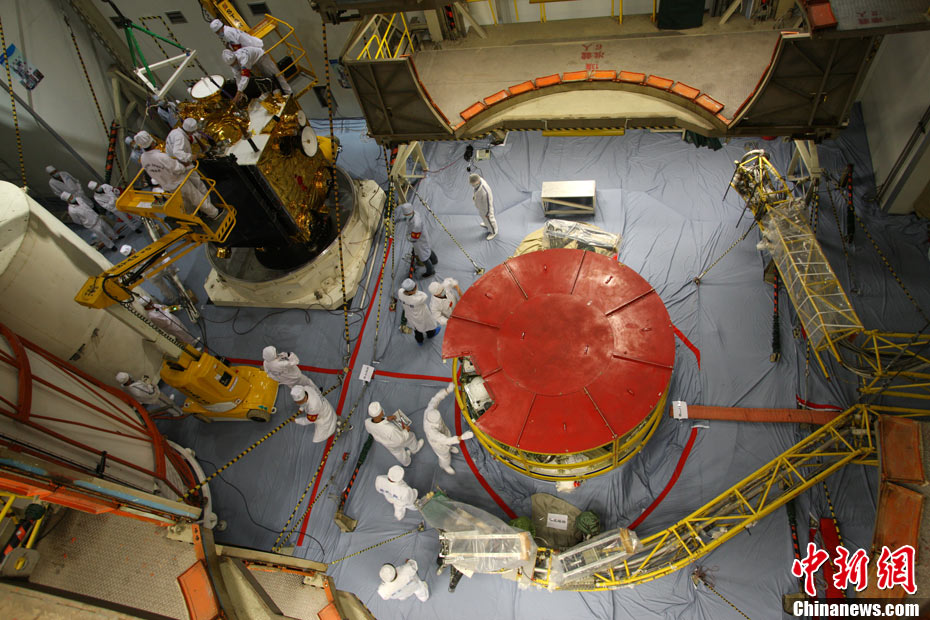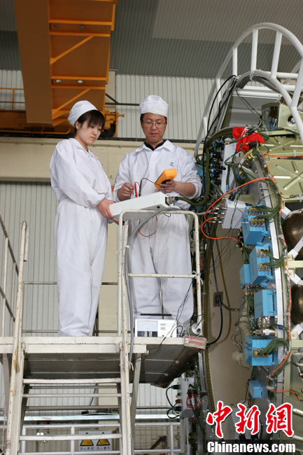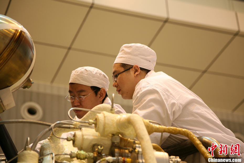 繼嫦娥一號(hào)衛(wèi)星圓滿完成我國(guó)首次繞月探測(cè)工程之后,嫦娥二號(hào)繞月探測(cè)衛(wèi)星作為我國(guó)探月工程二期的先行者,又踏上了奔月的征程。圖為精益求精細(xì)操作。圖片來(lái)源:中國(guó)航天科技集團(tuán)公司(崔寧 攝)