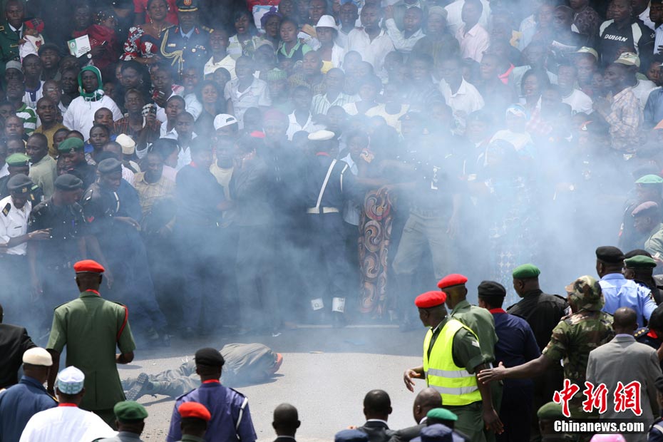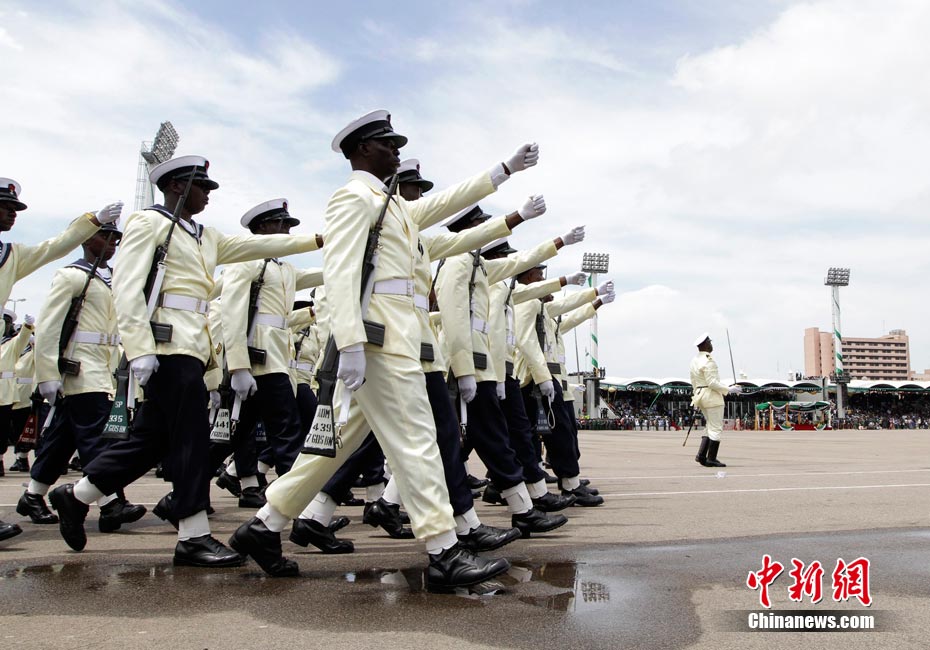 10月1日是尼日利亞獨(dú)立50周年的日子,當(dāng)天在首都阿布賈的雄鷹廣場舉行了盛大的閱兵式。舉行慶;顒(dòng)當(dāng)天,尼日利亞遭到恐怖襲擊,2枚炸彈在司法部外面幾乎同時(shí)引爆,目前已知至少有14人喪生,21人受傷,但是閱兵式還是順利地完成了。
