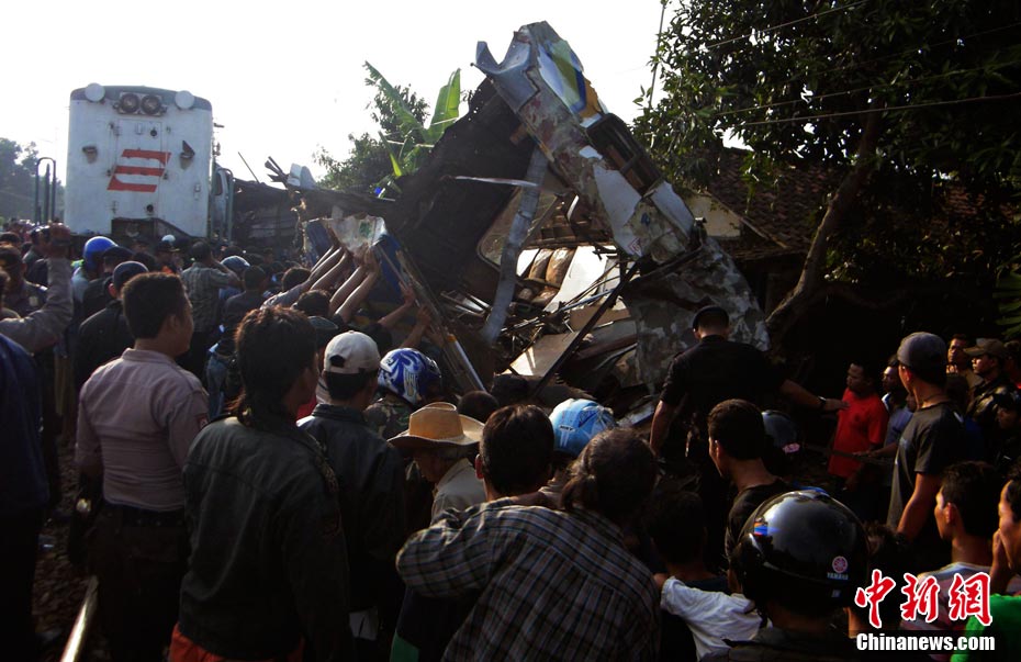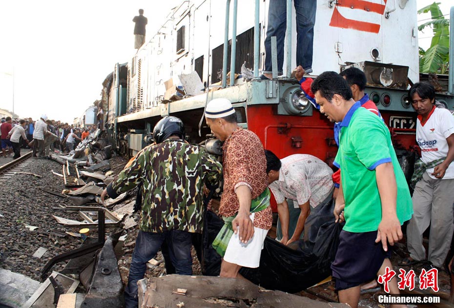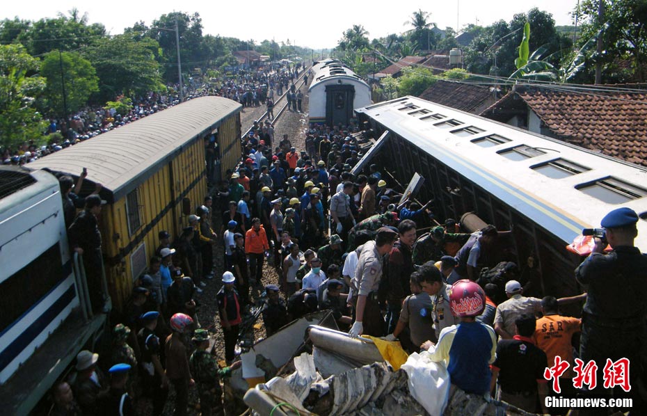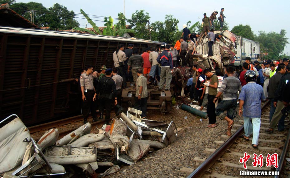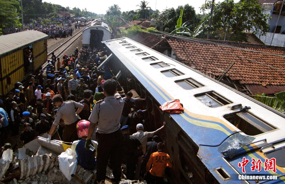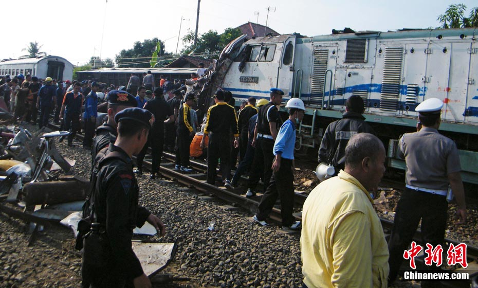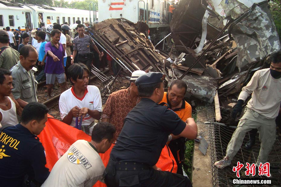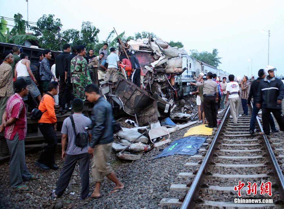 印尼中爪哇省2號發(fā)生火車相撞事故,至少已造成33人死亡。 事發(fā)在中爪哇北岸的珀塔魯坎,一列行駛中的列車,于凌晨約3點鐘,撞向一列停在車站內(nèi)的列車,當(dāng)時大部分人都在睡眠中,因此事故造成嚴(yán)重傷亡。