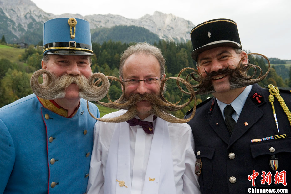 當(dāng)?shù)貢r間10月2日,“2010歐洲胡須錦標(biāo)賽”在奧地利舉辦,選手們“帶著”精心修整的美鬢參加大賽。