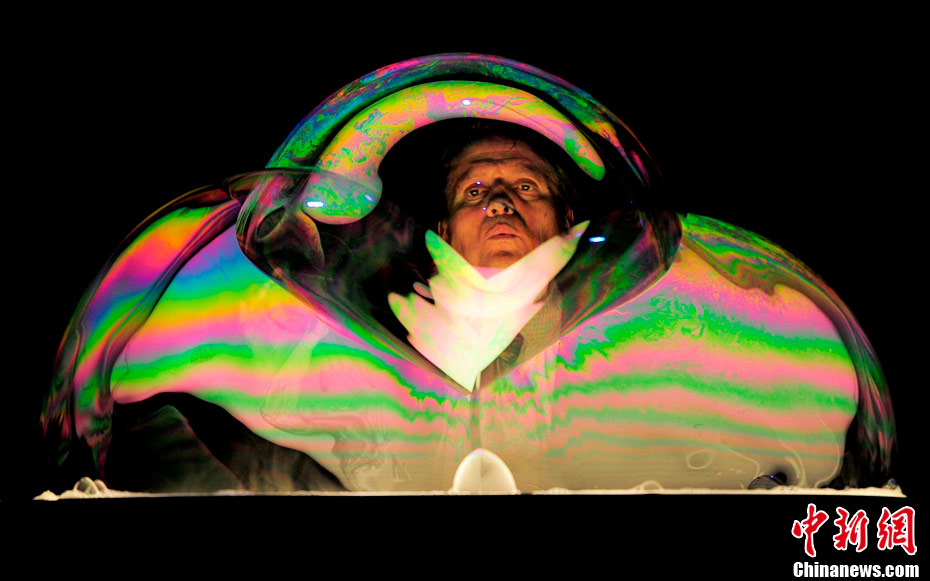 當地時間10月2日,西班牙肥皂泡魔術師佩普-布奧表演他的拿手好戲“泡泡秀”。