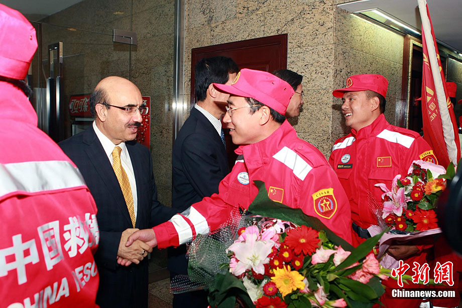 10月4日,中國國際救援醫(yī)療隊(duì)圓滿完成任務(wù),結(jié)束了在巴基斯坦為期40天的國際人道主義援助,于當(dāng)日10時(shí)左右抵達(dá)北京首都國際機(jī)場。經(jīng)過近40天的努力,兩批救援醫(yī)療隊(duì)共診治患者25664人次,開展手術(shù)100余例,已經(jīng)圓滿完成了這次國際救援任務(wù),受到聯(lián)合國衛(wèi)生組織、巴基斯坦政府和當(dāng)?shù)鼗颊叩母叨荣澴u(yù),較好地展示了救死扶傷的國際人道主義精神,彰顯了中國的良好形象,為中巴友誼賦予了新的內(nèi)涵。圖為首席醫(yī)療官、武警總醫(yī)院副院長梁立武帶領(lǐng)救援隊(duì)勝利凱旋。中新社發(fā) 姚洪華 攝