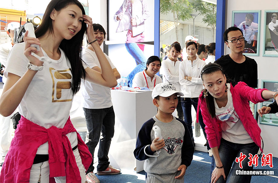10月4日,時(shí)尚中網(wǎng)代言人、第五屆中國職業(yè)模特大賽冠軍趙晨池,首屆亞洲超級模特大賽冠軍王慧在北京亮相時(shí)尚運(yùn)動品牌FILA展臺,與現(xiàn)場的球迷朋友們開展了一場別開生面的網(wǎng)球游戲體驗(yàn)活動,助陣FILA及參與本屆中網(wǎng)的FILA四位代言人。中新社記者 錢興強(qiáng) 攝