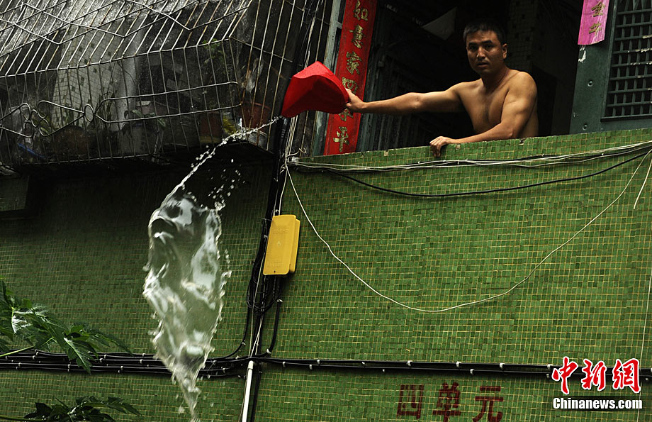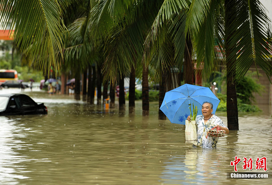 10月5日,持續(xù)五天的暴雨導致三亞多個小區(qū)嚴重積水。不少市民家中進水,商戶紛紛歇業(yè)避雨。徐勤濤 攝 圖片來源:cnsphoto