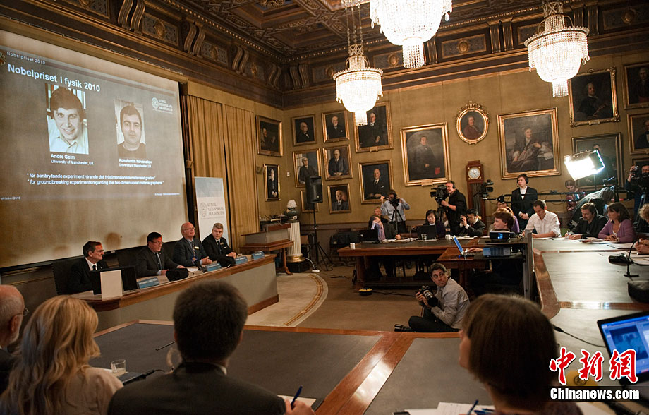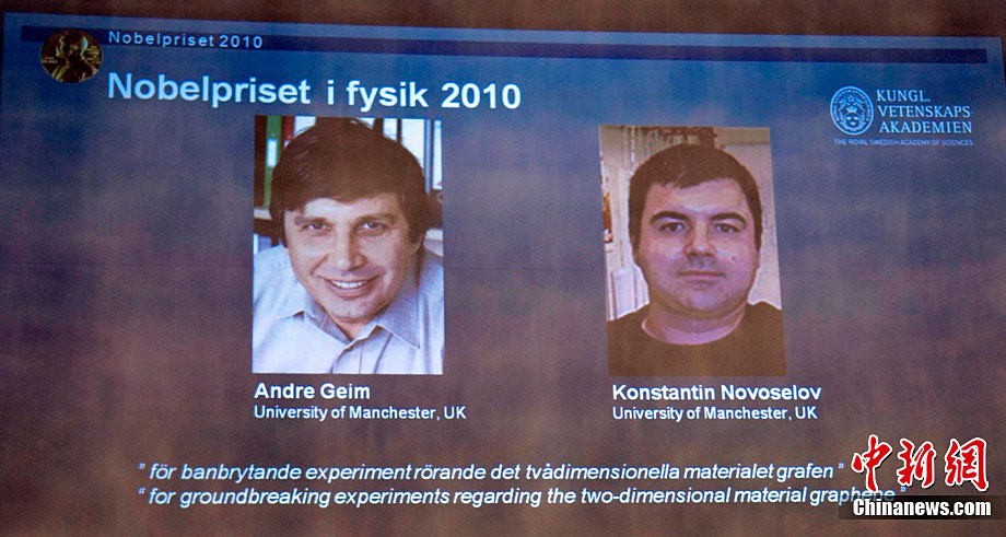 瑞典皇家科學(xué)院當(dāng)?shù)貢r(shí)間10月5日宣布,將2010年諾貝爾物理學(xué)獎(jiǎng)授予英國(guó)曼徹斯特大學(xué)科學(xué)家安德烈·海姆和康斯坦丁·諾沃肖洛夫,以表彰他們?cè)谑┎牧戏矫娴淖吭窖芯俊?/div>
