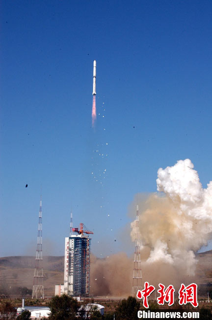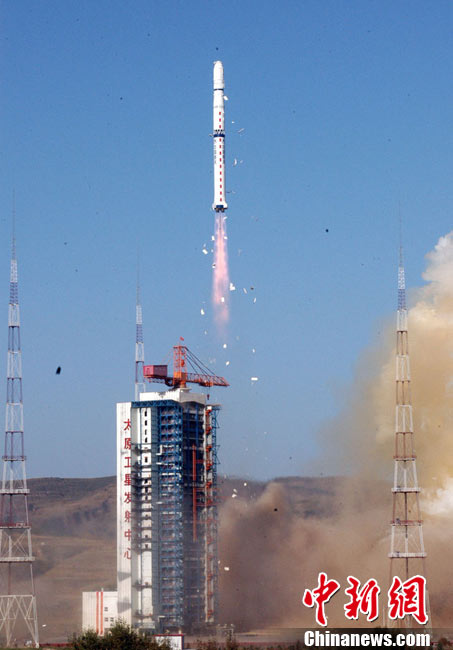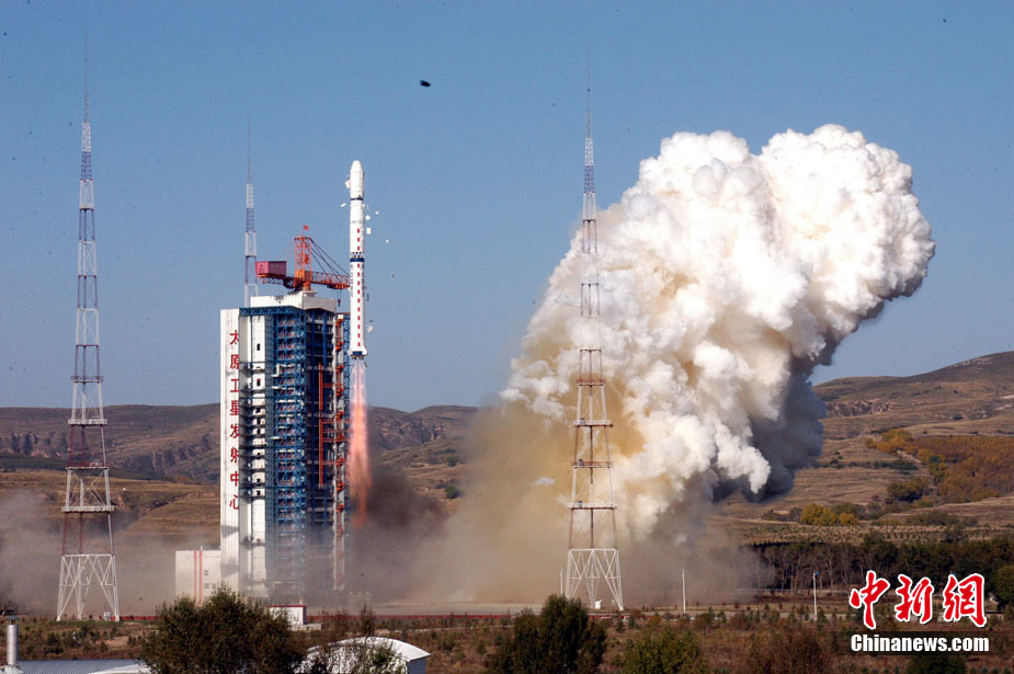 北京時間10月6日8時49分,中國在太原衛(wèi)星發(fā)射中心用“長征四號乙”運(yùn)載火箭一箭雙星,成功將“實(shí)踐六號”04組兩顆空間環(huán)境探測衛(wèi)星送入太空。中新社發(fā) 尚春雅 攝