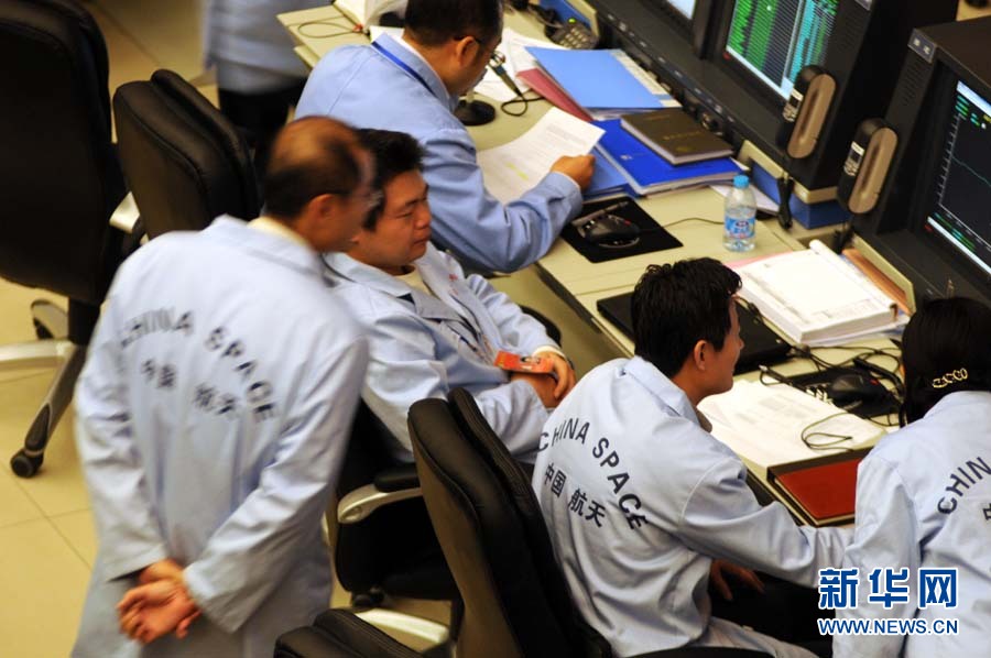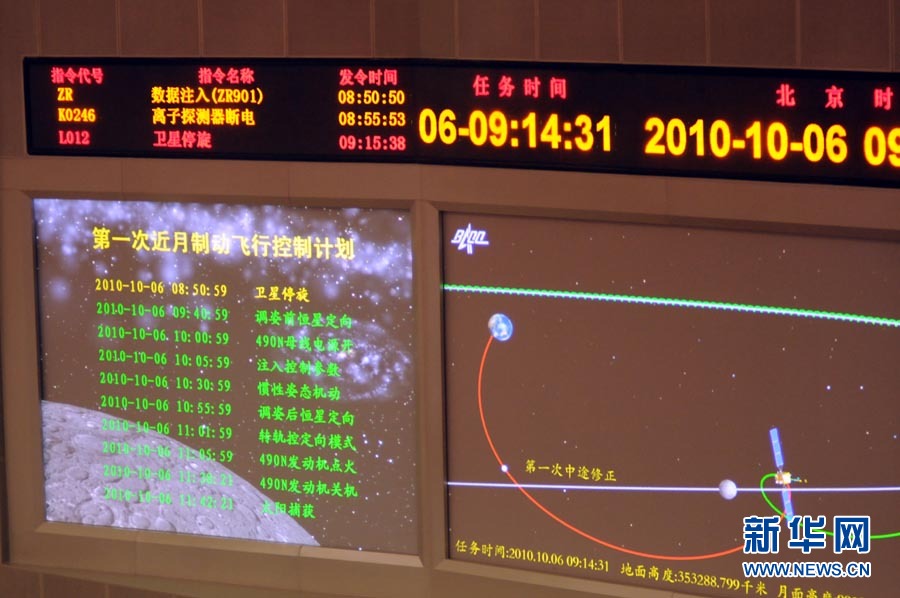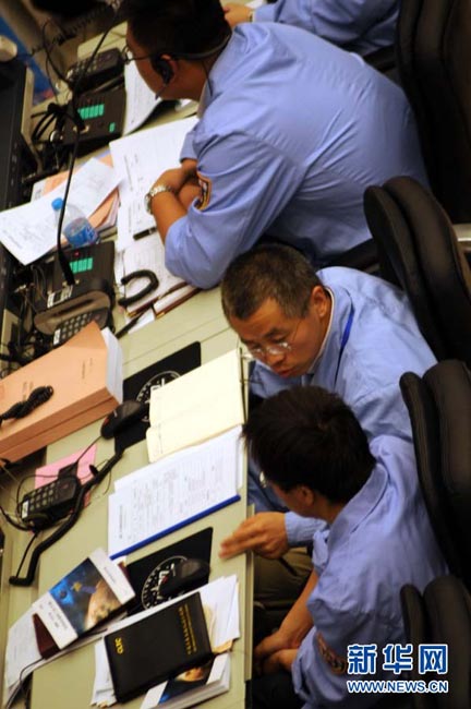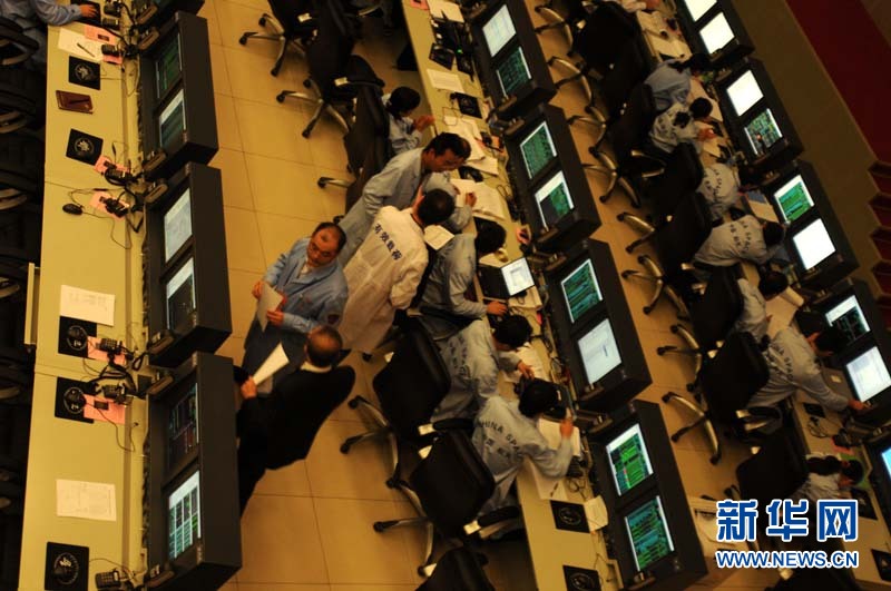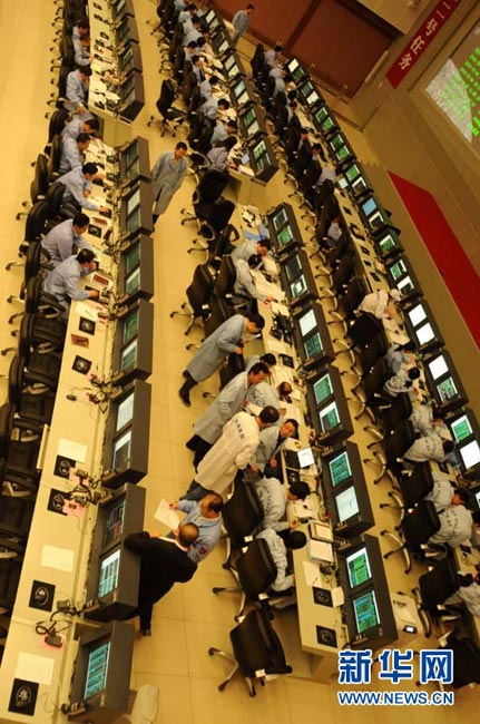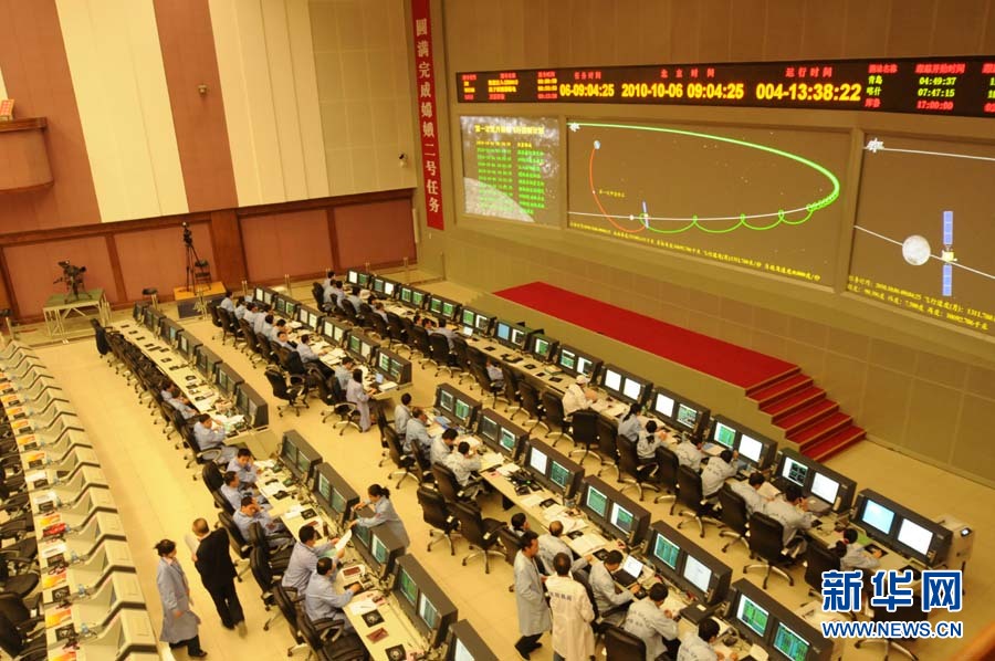10月6日,嫦娥二號衛(wèi)星按照計(jì)劃將進(jìn)行第一次近月制動。圖為正在進(jìn)行準(zhǔn)備工作的北京航天飛行控制中心控制大廳。田兆運(yùn)攝 圖片來源:新華網(wǎng)