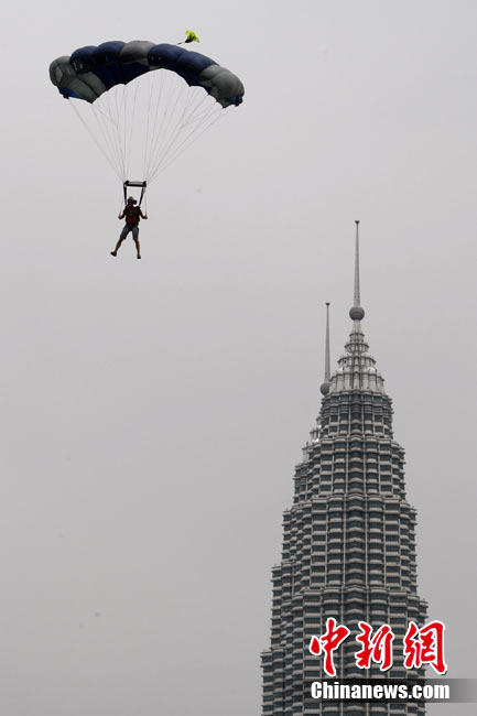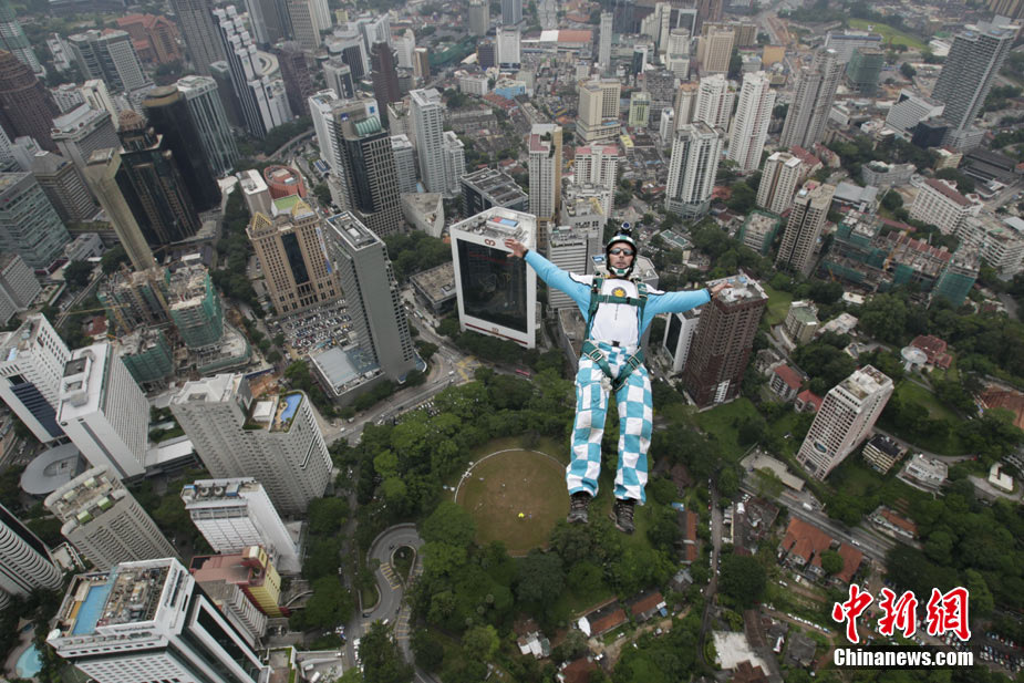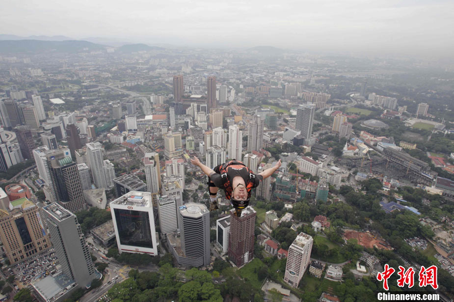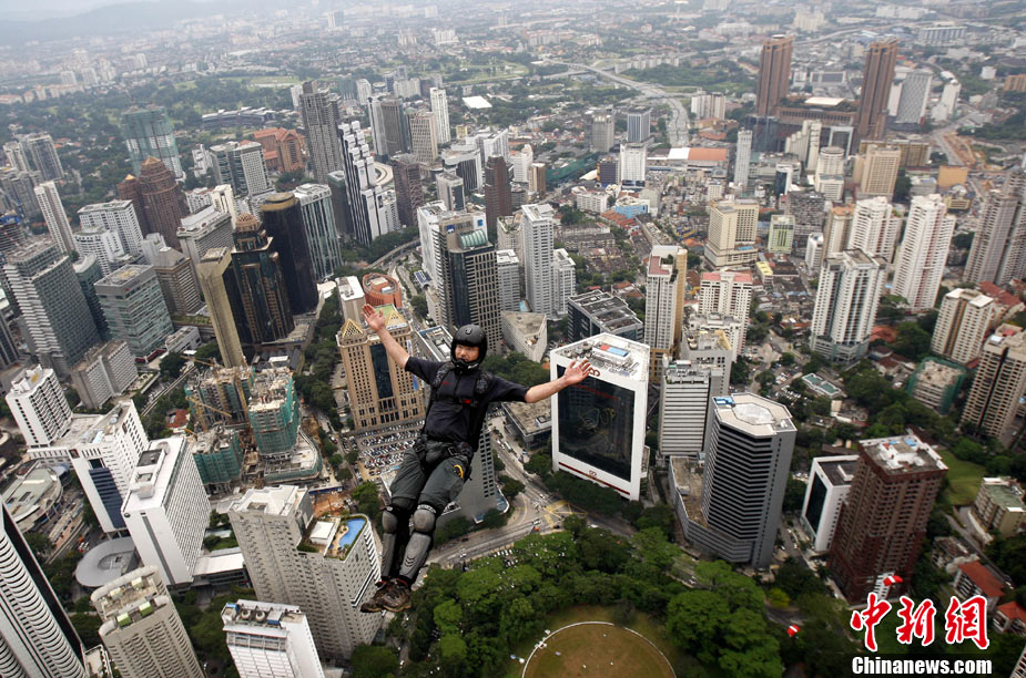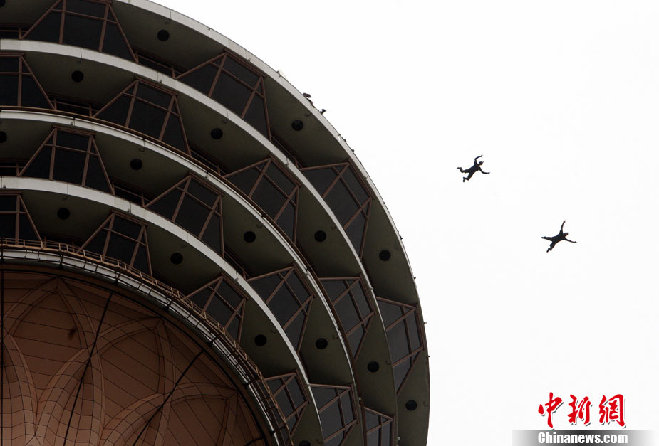 10月7日,幾位極限高手在馬來(lái)西亞吉隆坡的雙子高塔上大玩跳躍,體驗(yàn)超乎尋常的刺激感受。