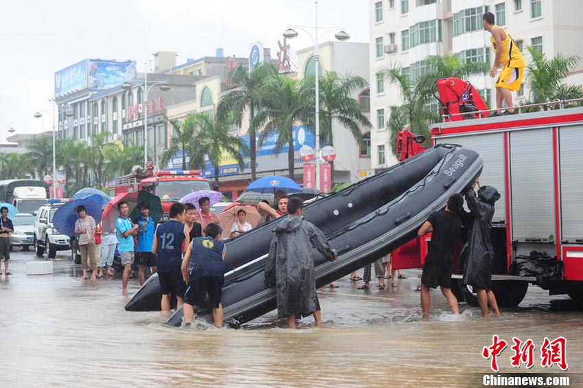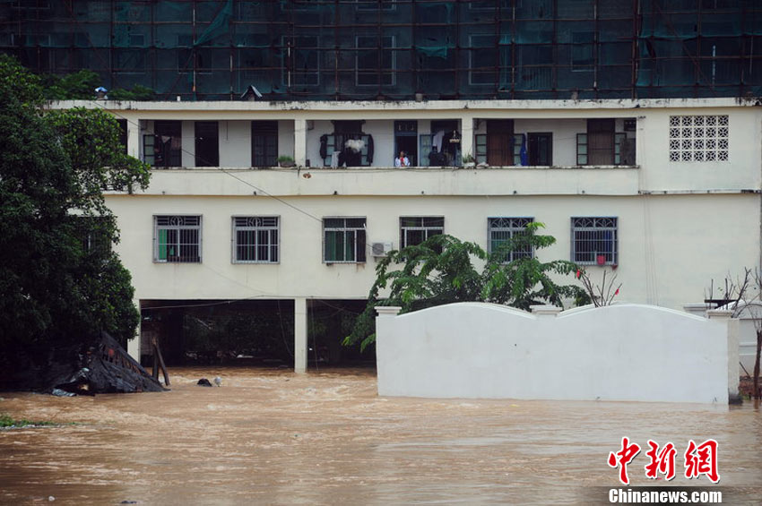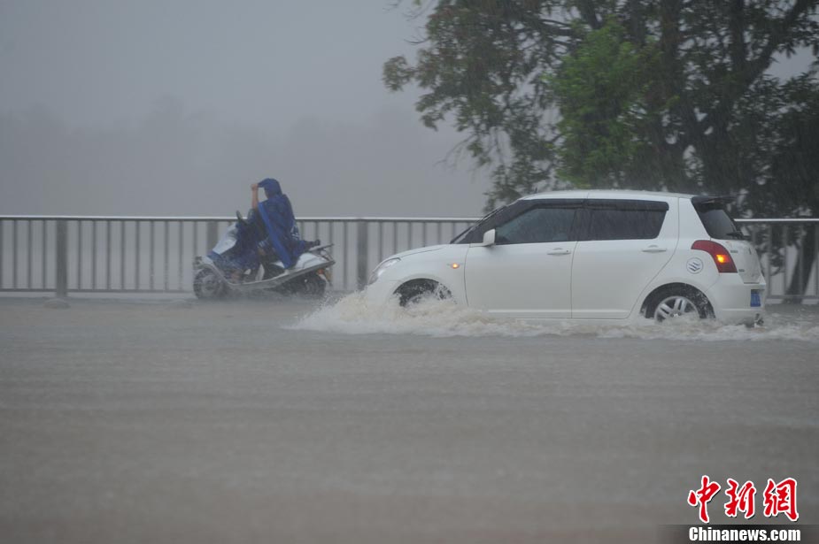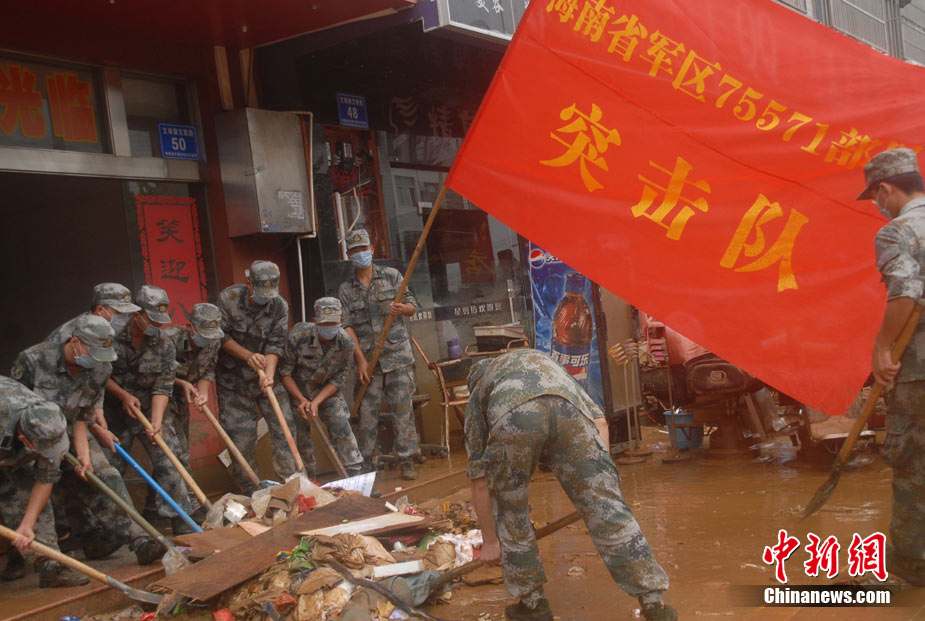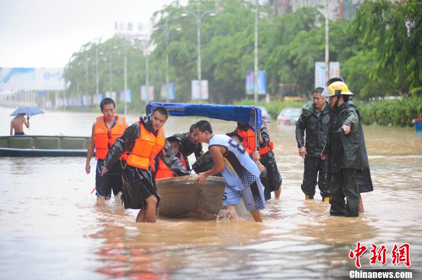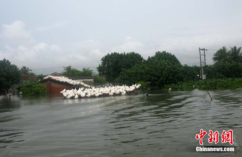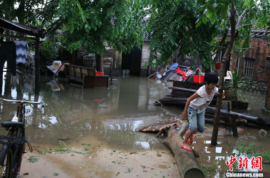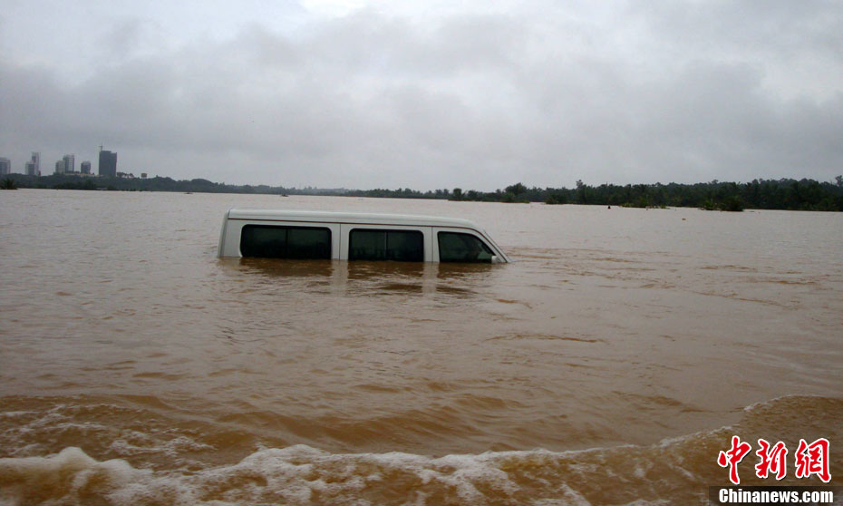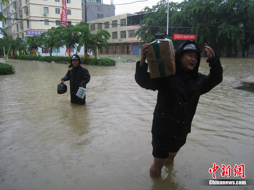 10月9日,海南省萬寧市萬城鎮(zhèn)北坡,暴雨過后的洪水依然沒有完全消退,民眾在洪水中艱難前行。自9月30日夜間至10月7日19時止,萬寧市連續(xù)8天普降大暴雨,局部特大暴雨,降雨量達1121.4毫米,全市20個觀測站累積降雨量均超過1000毫米,最大的為龍滾站1343.6毫米,過程雨量為歷史罕見。中新社記者 尹海明 攝