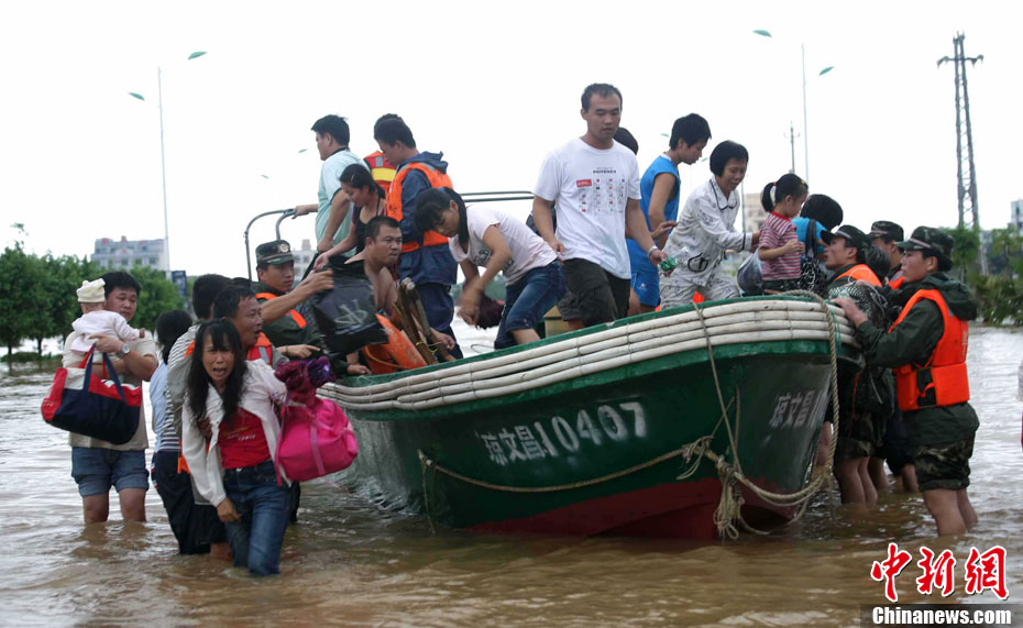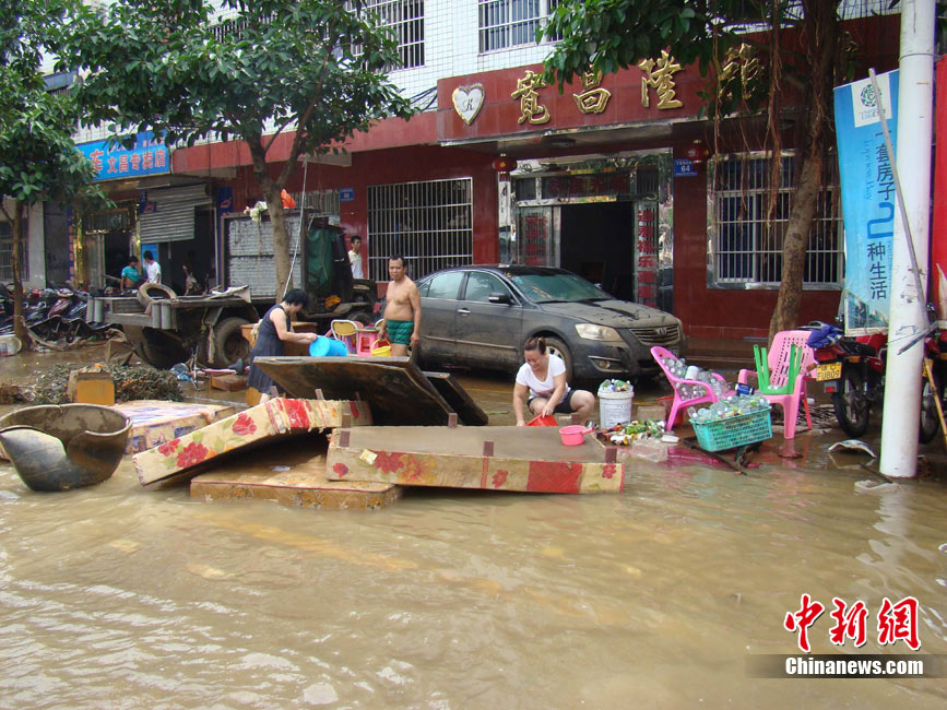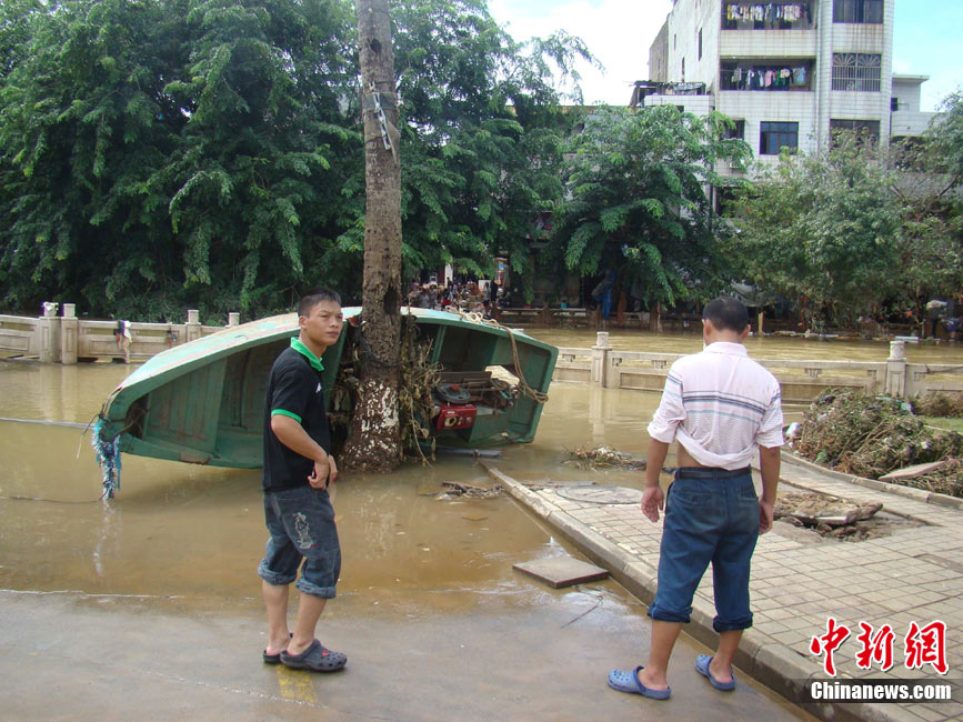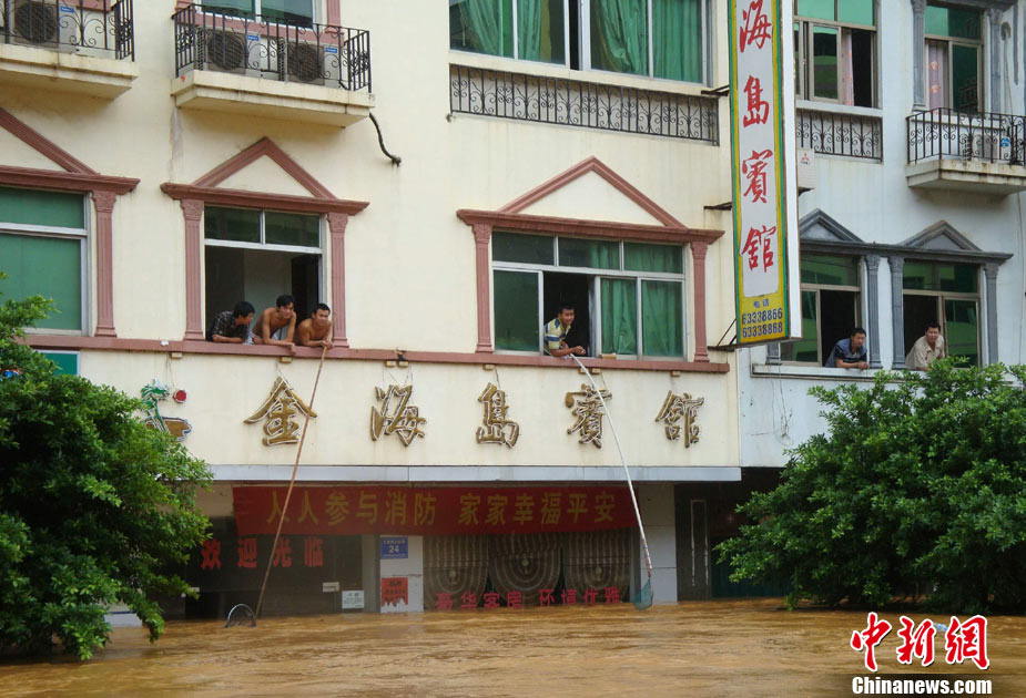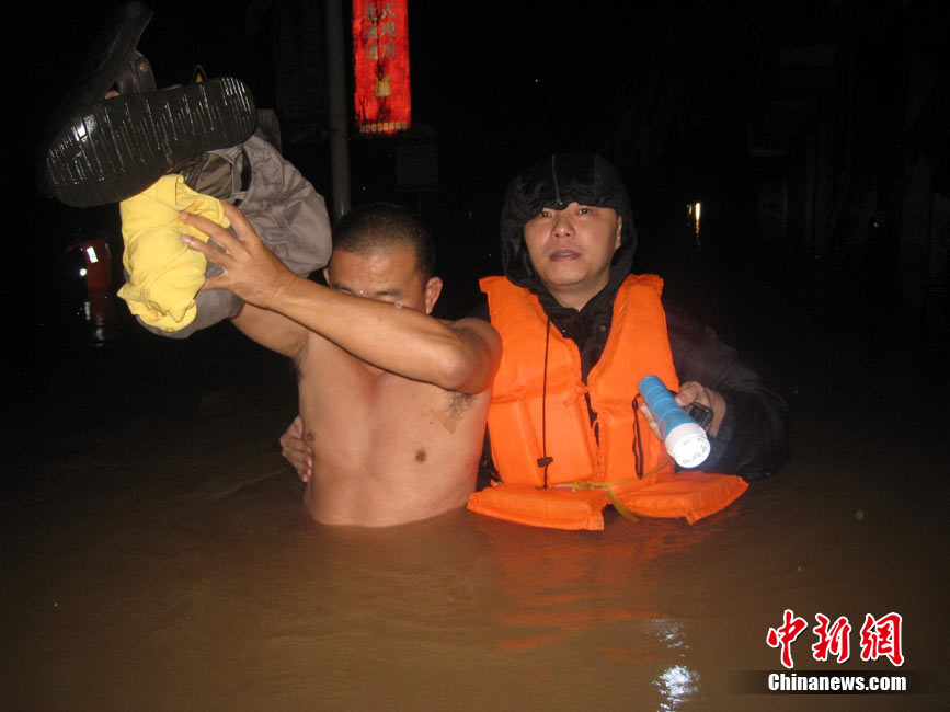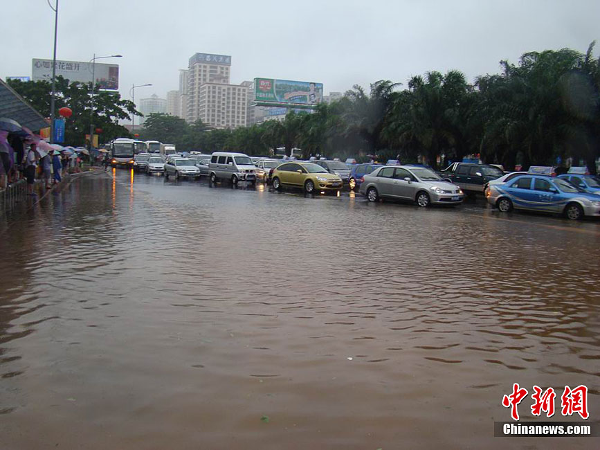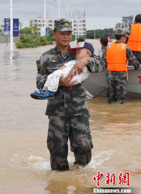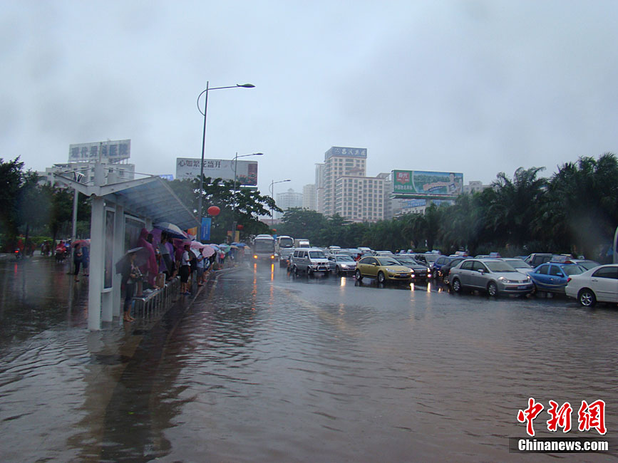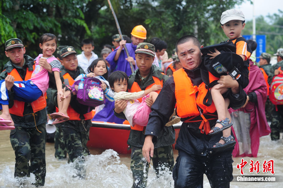 10月9日,海南省萬寧市萬城鎮(zhèn)北坡,暴雨過后的洪水依然沒有完全消退,民眾在洪水中艱難前行。自9月30日夜間至10月7日19時止,萬寧市連續(xù)8天普降大暴雨,局部特大暴雨,降雨量達1121.4毫米,全市20個觀測站累積降雨量均超過1000毫米,最大的為龍滾站1343.6毫米,過程雨量為歷史罕見。中新社記者 尹海明 攝
