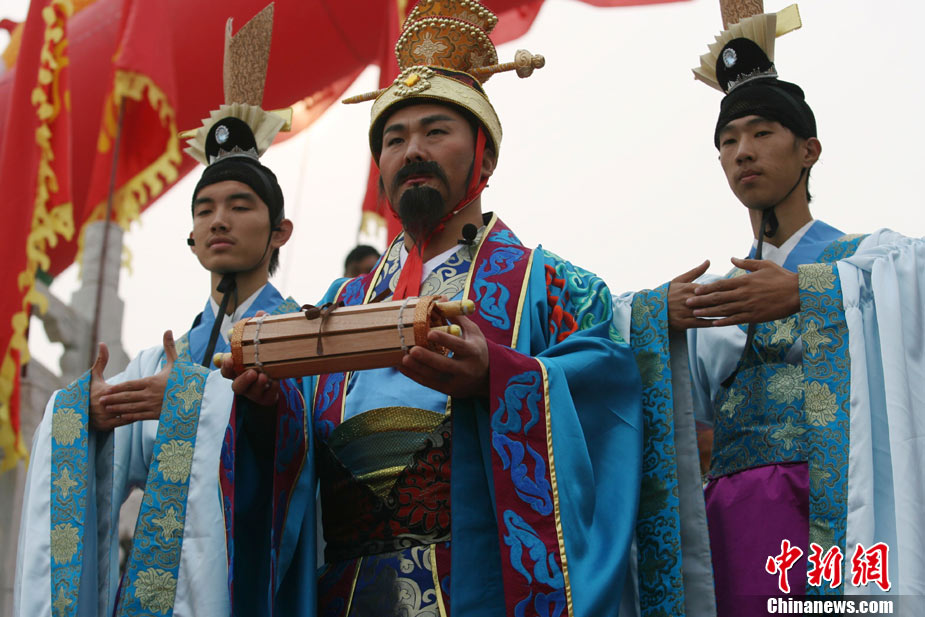 10月10日,演員在祭荀大典上表演戰(zhàn)國(guó)風(fēng)格的舞蹈。當(dāng)日,第五屆中國(guó)荀子文化節(jié)開(kāi)幕式暨祭荀大典在荀子故里山西省安澤縣舉行。包括10國(guó)駐華大使在內(nèi)的數(shù)千名海內(nèi)外人士參加了此次大典。中新社發(fā) 蘇丹 攝